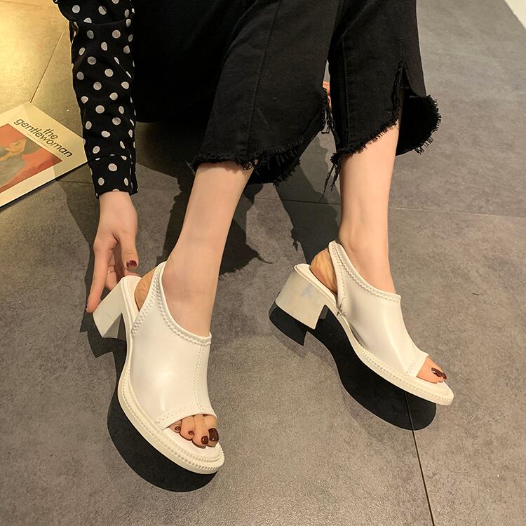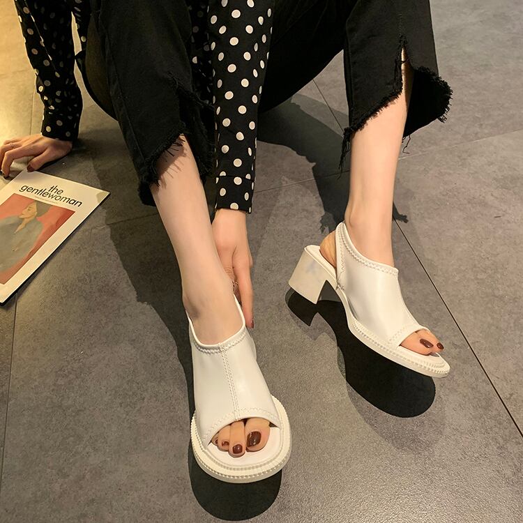 ヒールスタイルサマーホワイトサンダル 靴 シューズ 夏物 部族の婦人靴54502006820