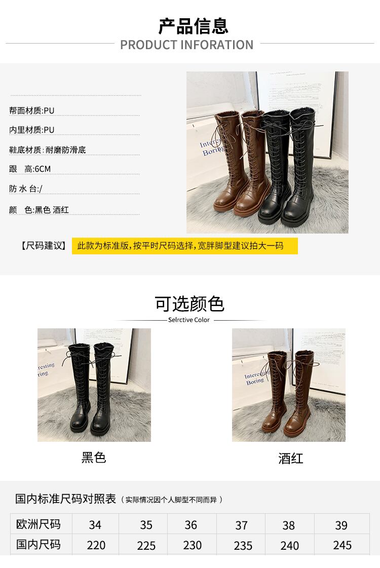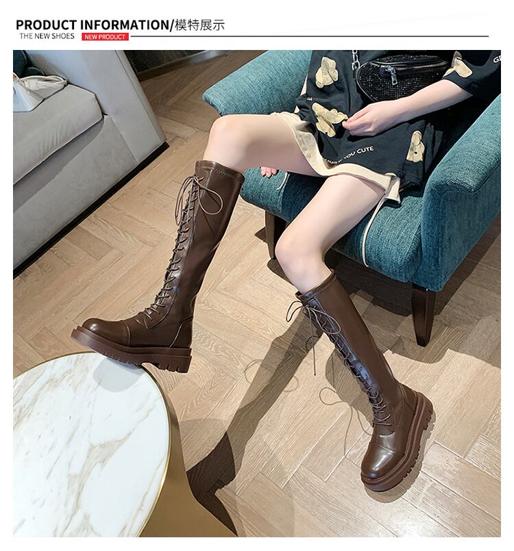ロングブーツオータムウィンタースタンダード レトロ レース 靴 シューズ 秋物 冬物 レースアップ 部族の婦人靴48125890285