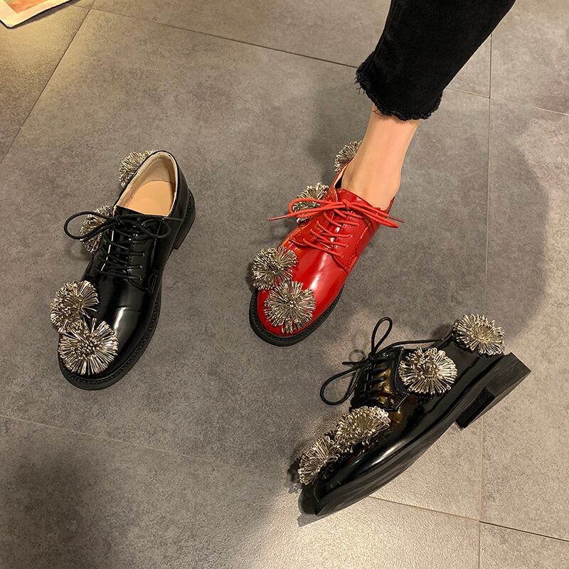 スタイルFlowerデザイン レザーレディーススプリングスタンダードシングル 靴 シューズ レトロ 春物 フラワーデザイン 部族の婦人靴54639179785