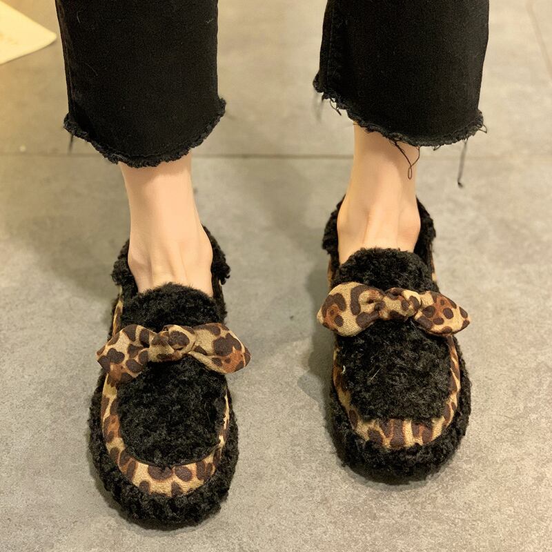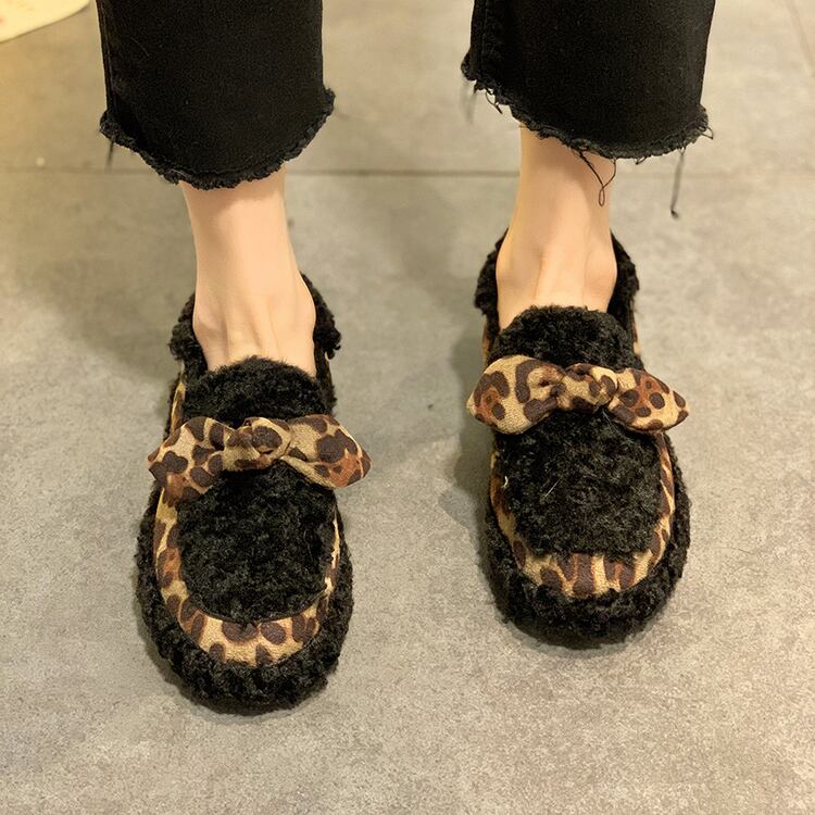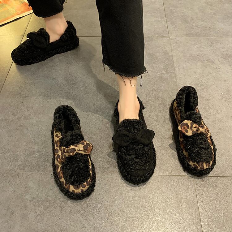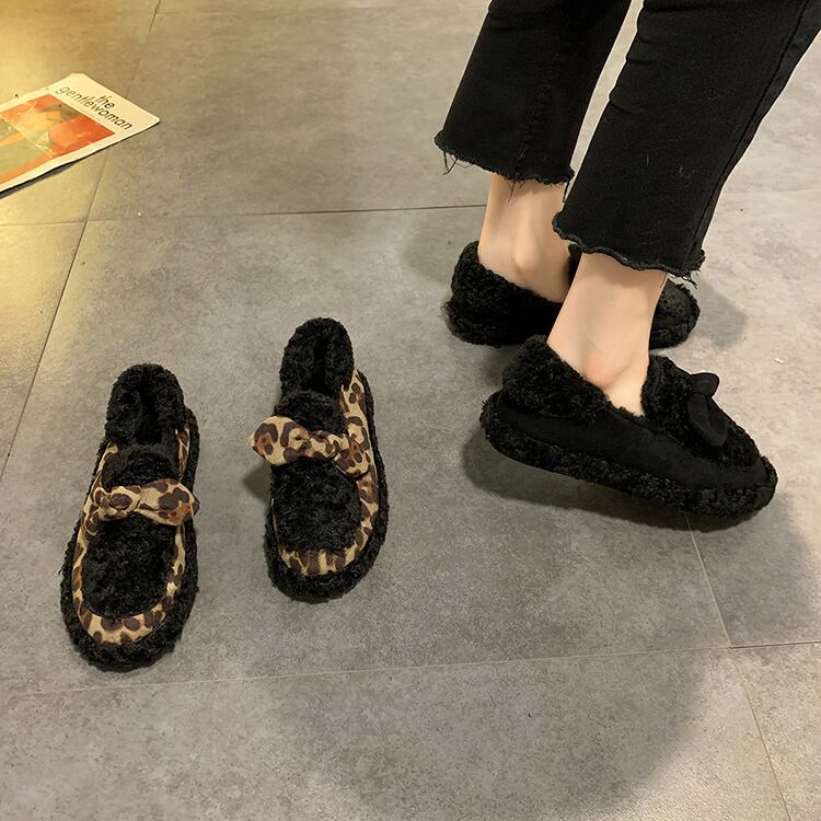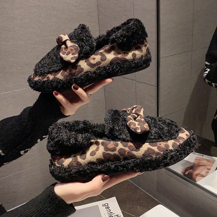 ウィンターレオパードプリント柄サーマルセット レッドベルベット 靴 シューズ コットン 冬物 部族の婦人靴8027490142
