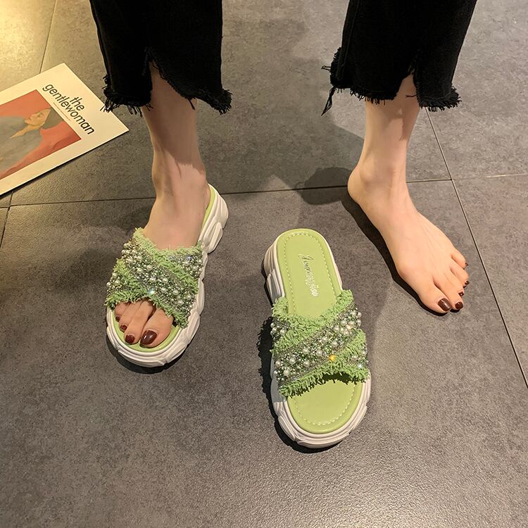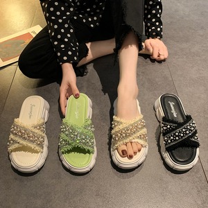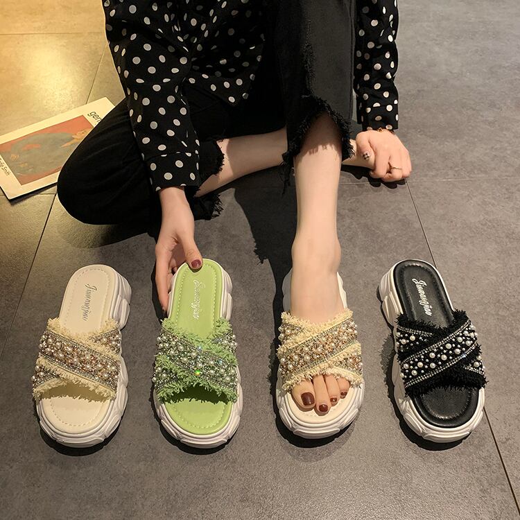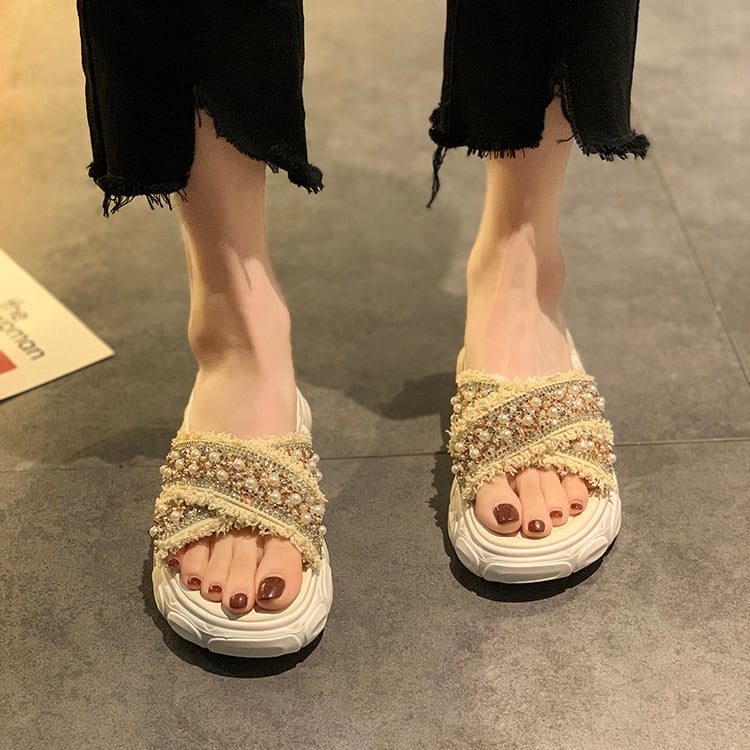 ミュールサマーパールクロスレッド 靴 シューズ 夏物 真珠 部族の婦人靴34432081010