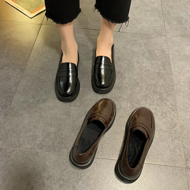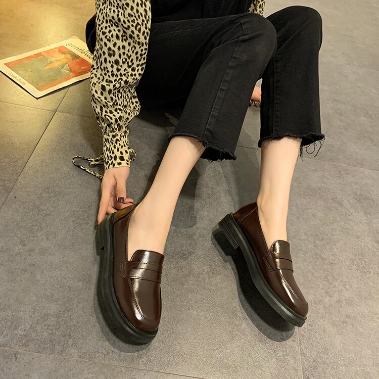 スタイルレザーウィンターカジュアルソリッド カラーシングル 靴 シューズ 冬物 ソリッドカラー スクウェア 部族の婦人靴7783768623