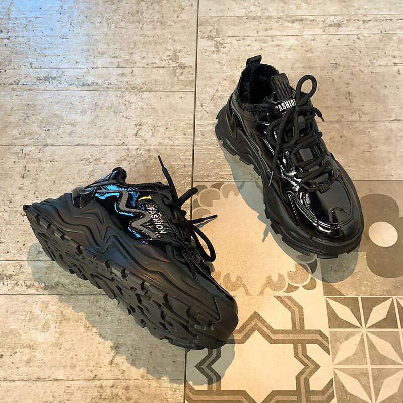 ウィンターレッドカジュアルベルベットブラック 靴 シューズ レース スニーカー 冬物 レースアップ 部族の婦人靴62882580100