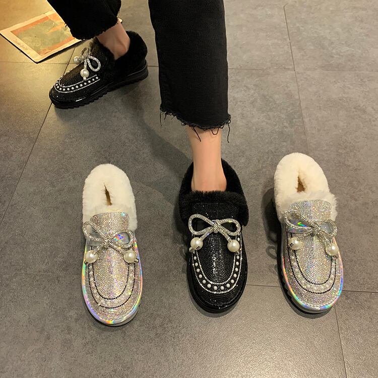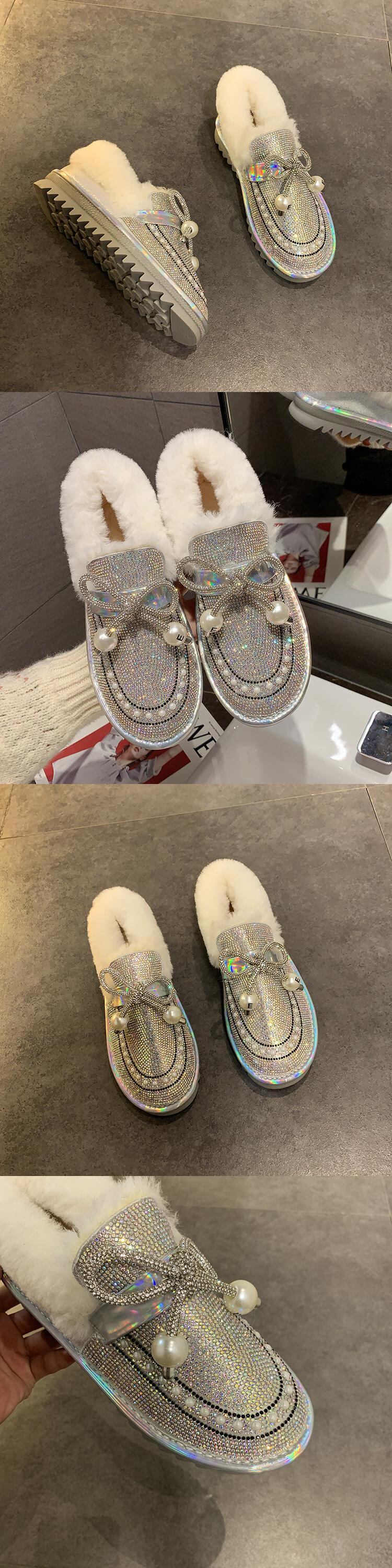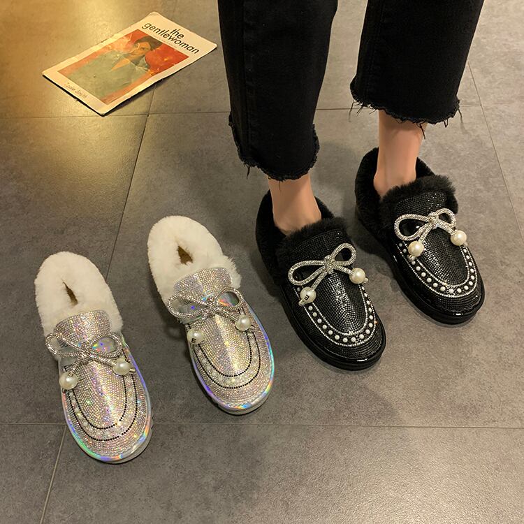 ウィンターベルベットショートリボンラインストーンブーツ 靴 シューズ コットン 冬物 部族の婦人靴17757120294