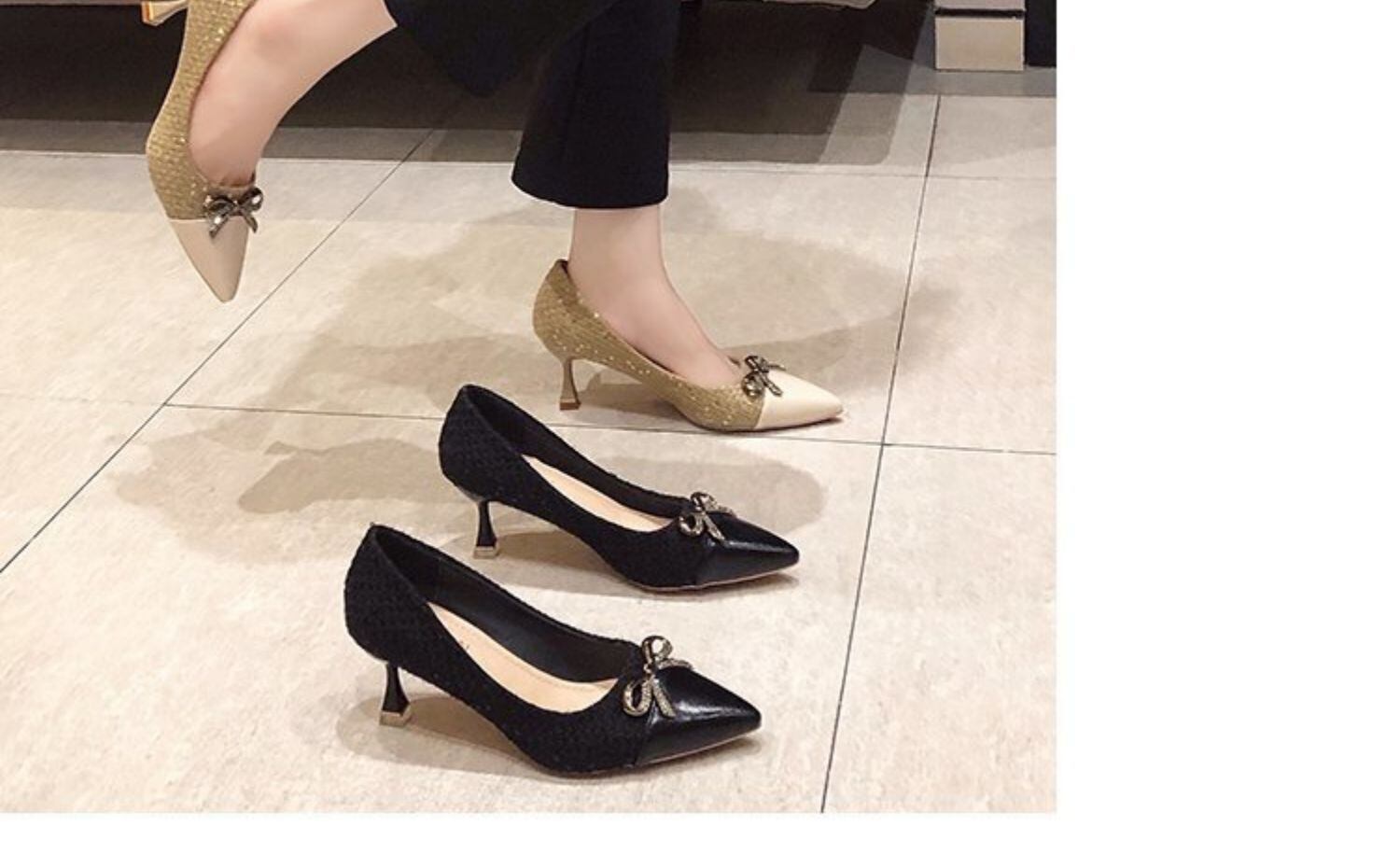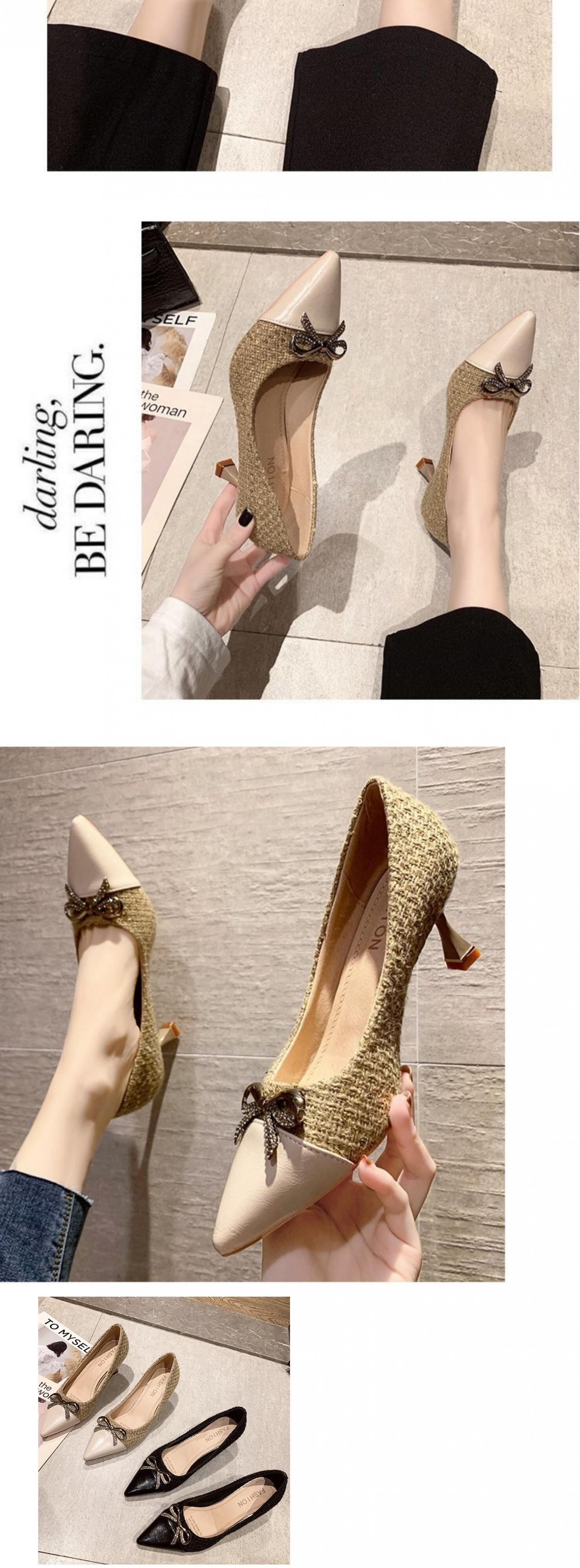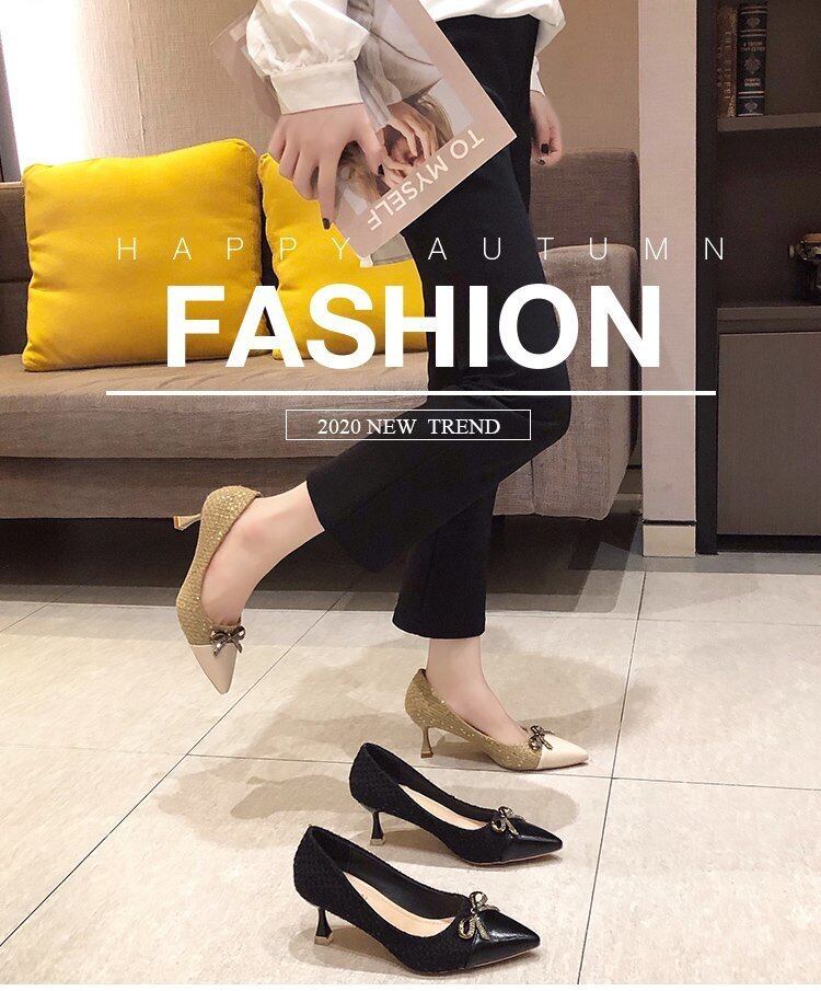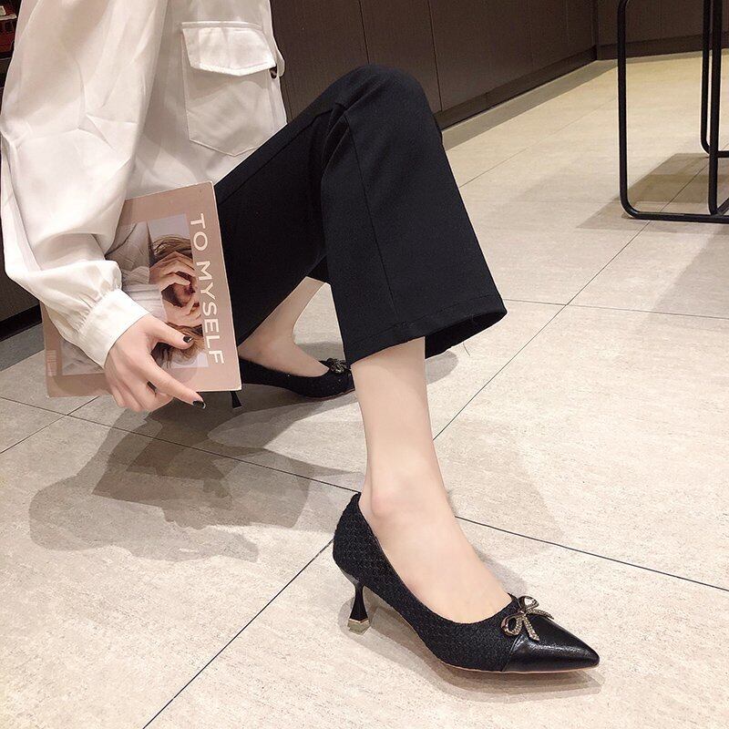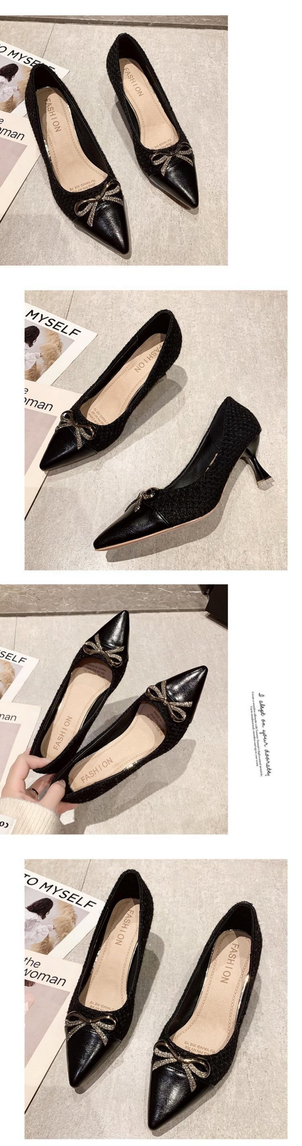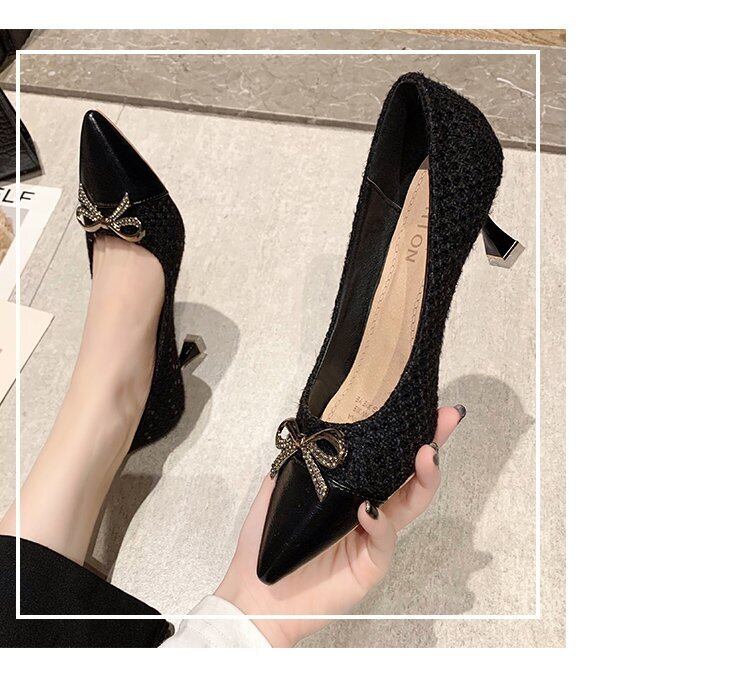 シングルレディーススプリングブラックリボンラインストーンヒール 靴 シューズ ハイヒール 春物 部族の婦人靴17759448801