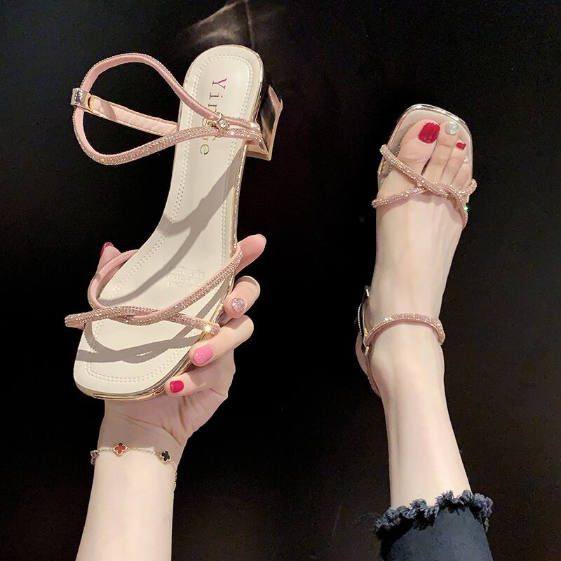 ラインストーンサンダルサマースタイルハイヒール 靴 シューズ 夏物 部族の婦人靴58183500152