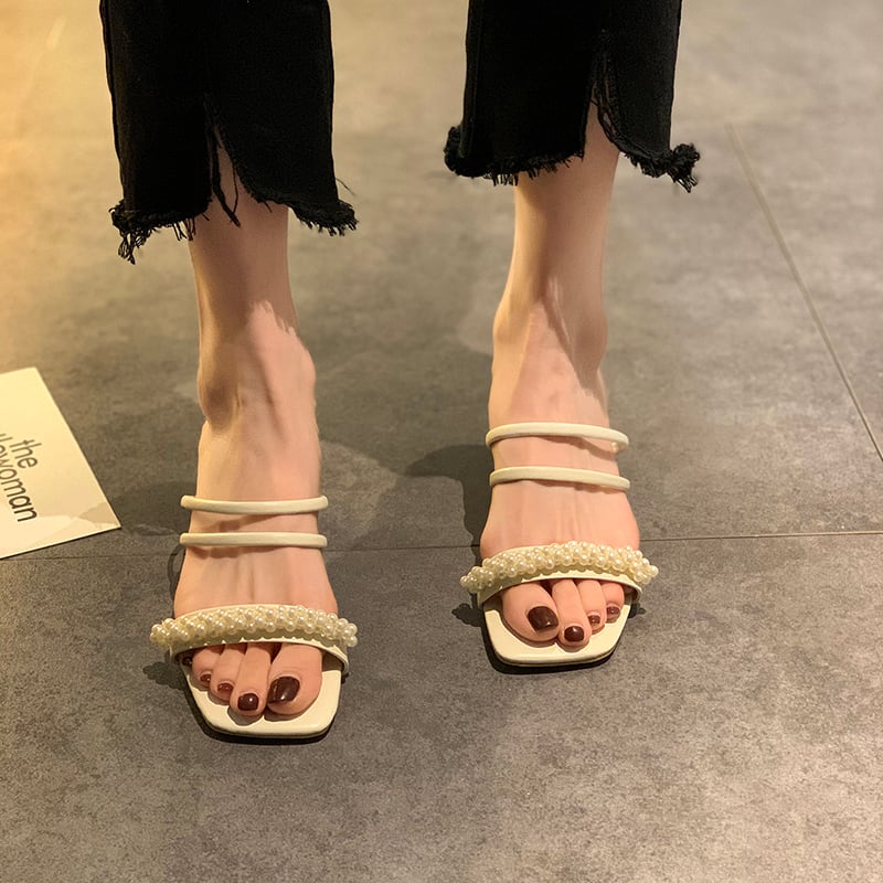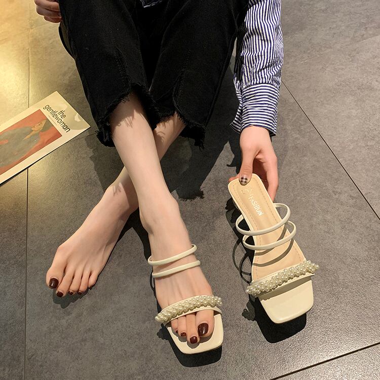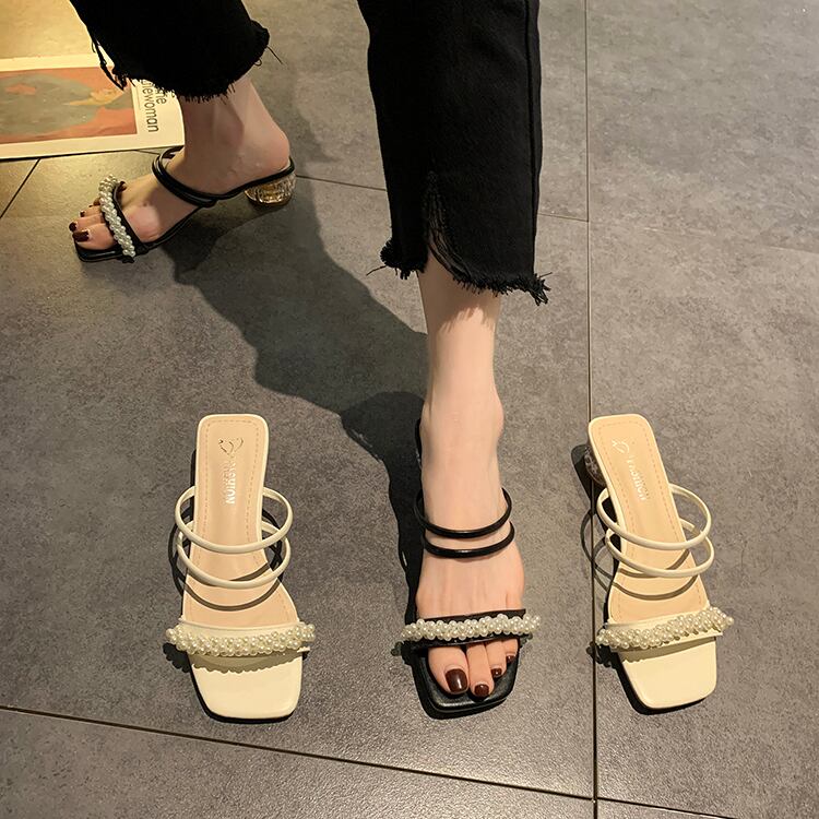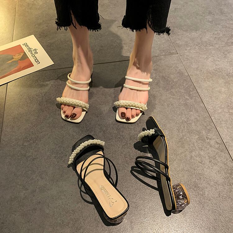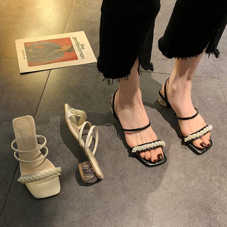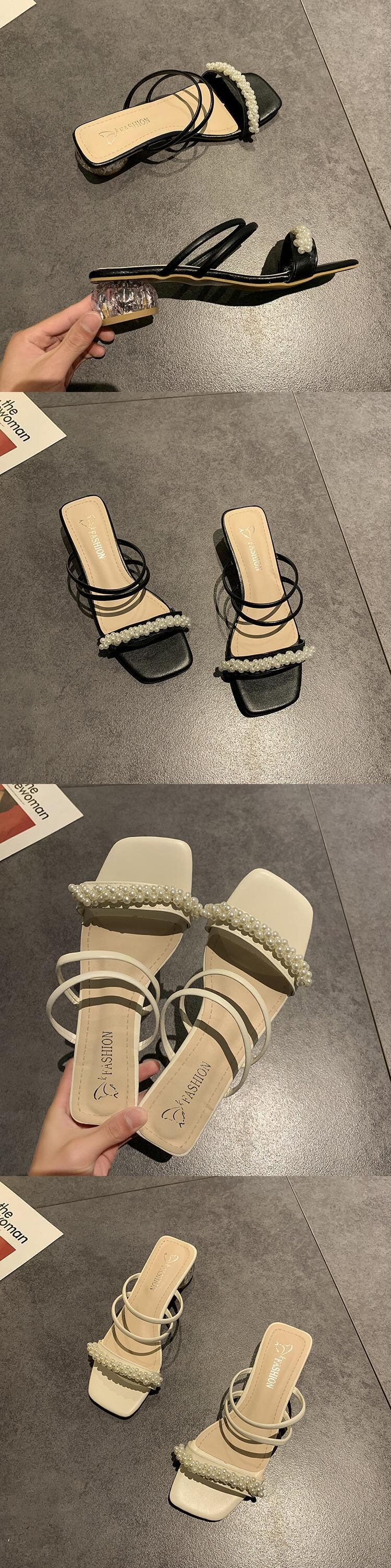 パールサンダルミュールサマーレッドクリスタル 靴 シューズ 夏物 真珠 部族の婦人靴21986583167