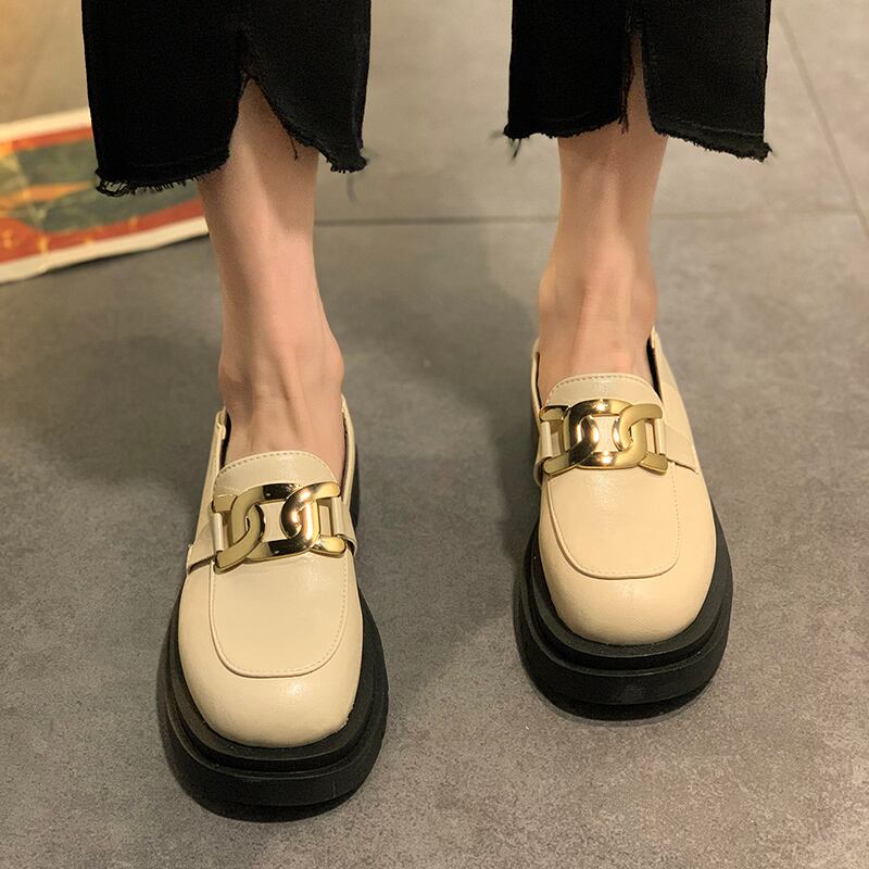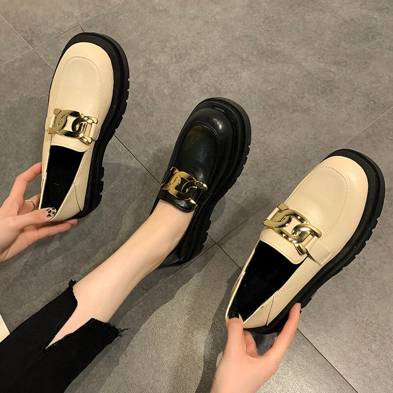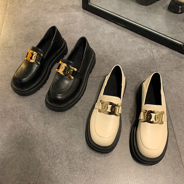 レザースタイルブラックスプリングオータムスタンダードシングル 靴 シューズ レトロ ローファー 春物 秋物 部族の婦人靴58738819026