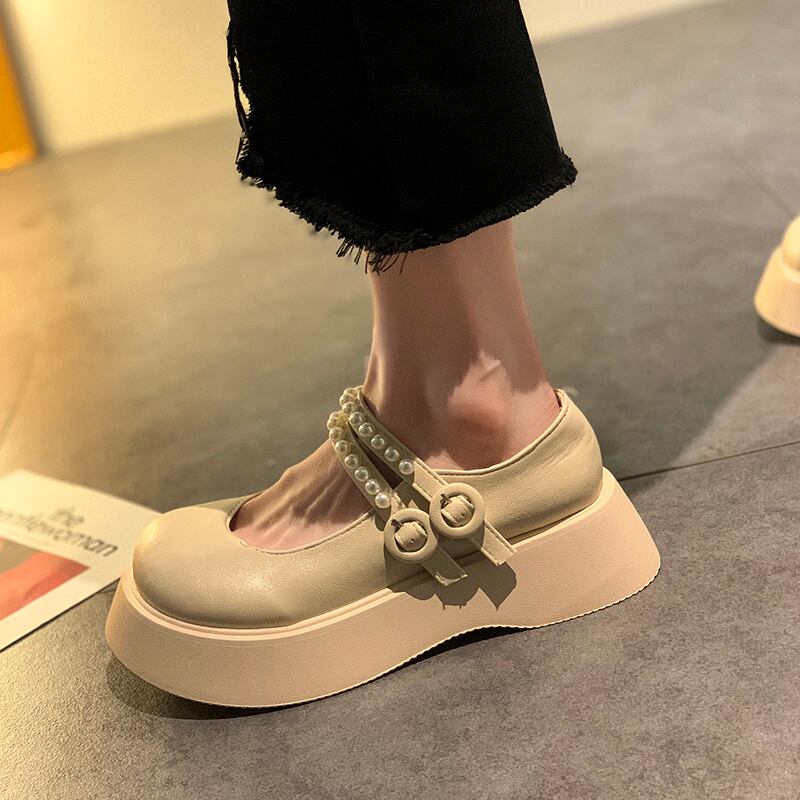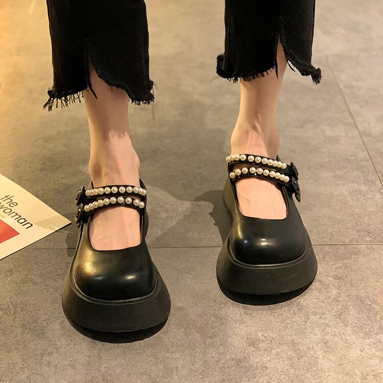 シングルサマーパールブラックバックルスタンダードレザー 靴 シューズ レトロ 夏物 真珠 部族の婦人靴26858083529