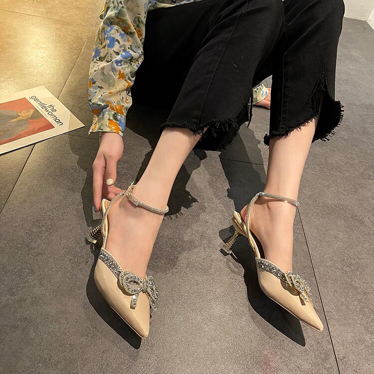 サンダルサマーレッドスタイルラインストーンリボンヒール 靴 シューズ 夏物 部族の婦人靴85810824513