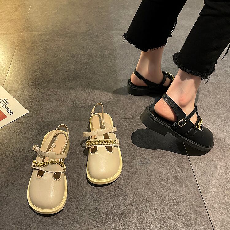 サンダルサマーレザーバックルスタンダードブラック レトロ 靴 シューズ 夏物 部族の婦人靴18280973324