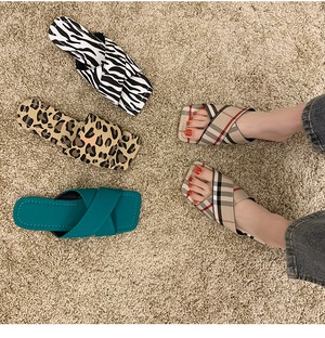 レオパードプリント柄ミュールレディースサマーレッドカジュアル 靴 シューズ 夏物 部族の婦人靴23056247529