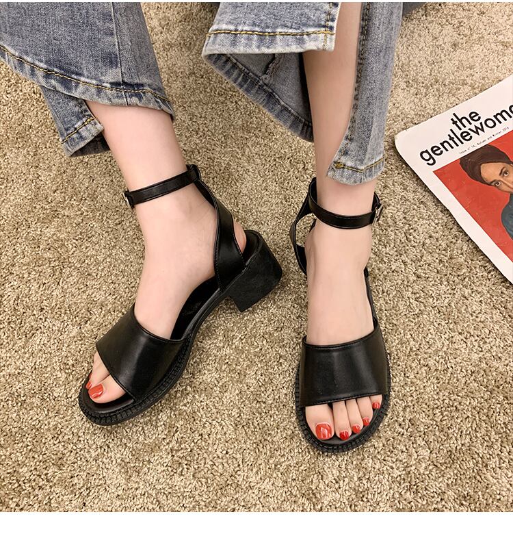 サンダルサマーブラックスタンダードバックルハイヒール 靴 シューズ レトロ 夏物 部族の婦人靴43234590859