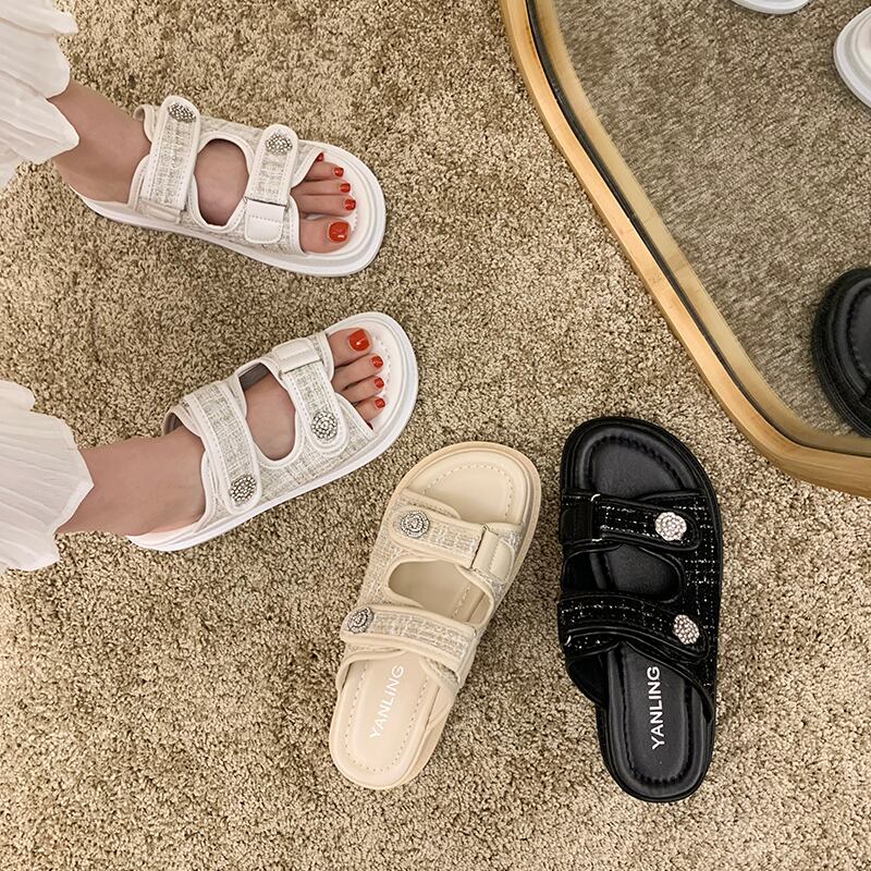 ミュールサマーカジュアルラインストーンサンダル 靴 シューズ 夏物 ビーチ 部族の婦人靴6452013155