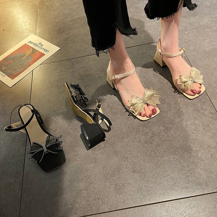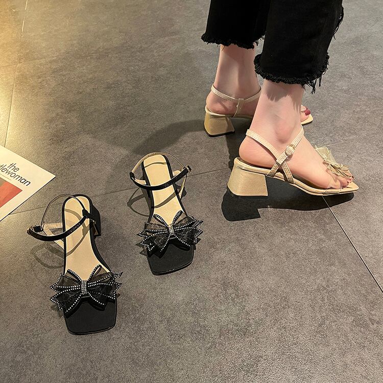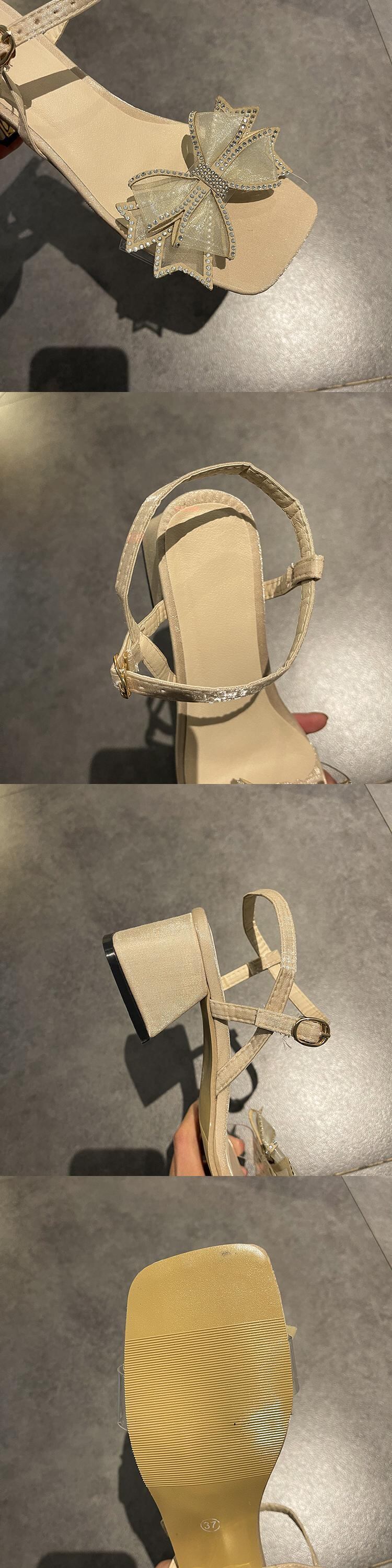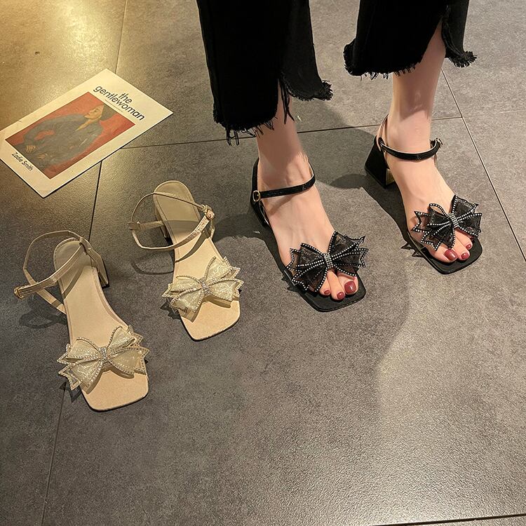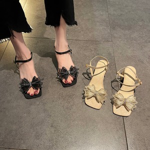 サンダルサマースタイルラインストーンメッシュリボンヒール ハイヒール 靴 シューズ 夏物 部族の婦人靴42298289677