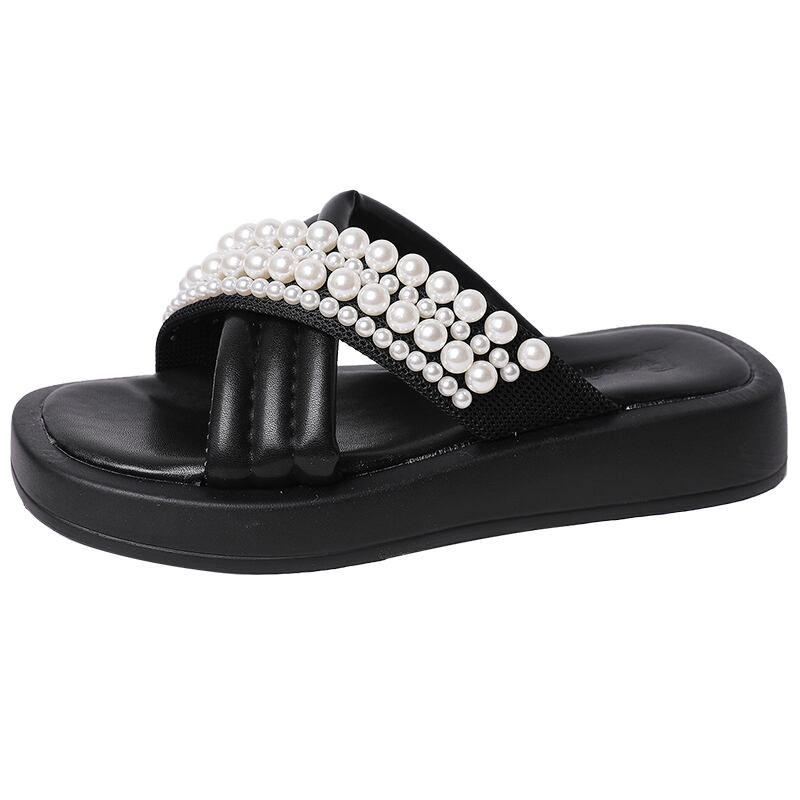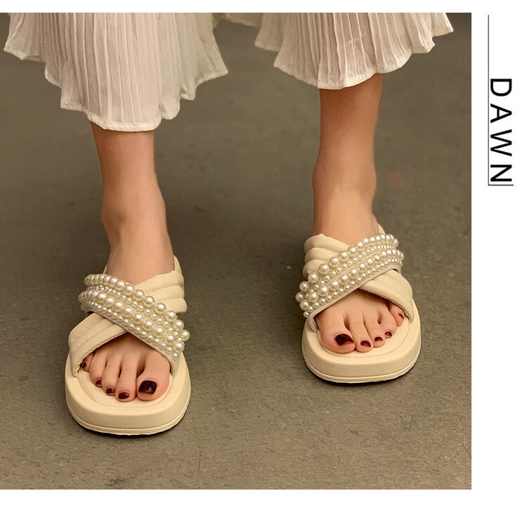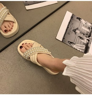 ミュールサマーパールクロスベルト レッドサンダル 靴 シューズ 夏物 ハーネス 真珠 部族の婦人靴79193993434