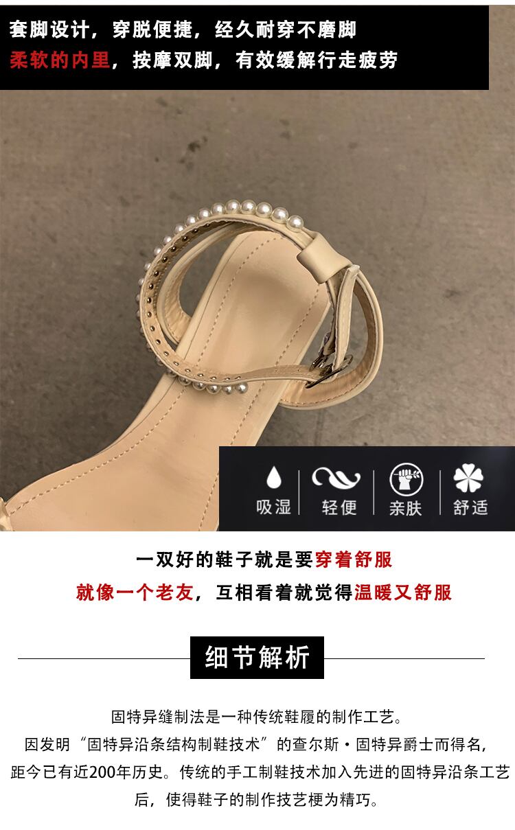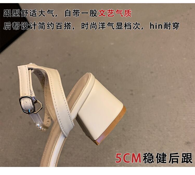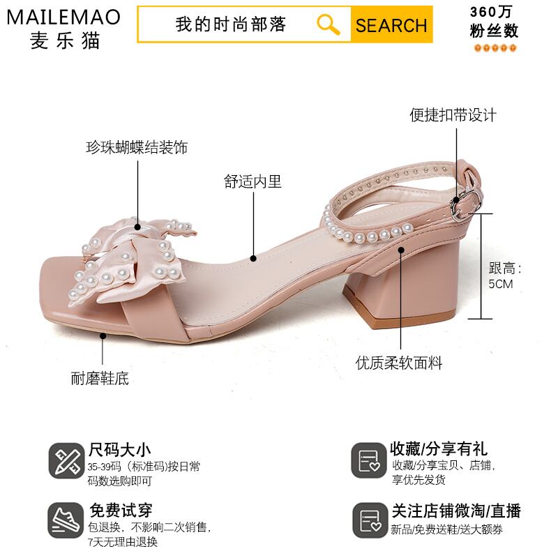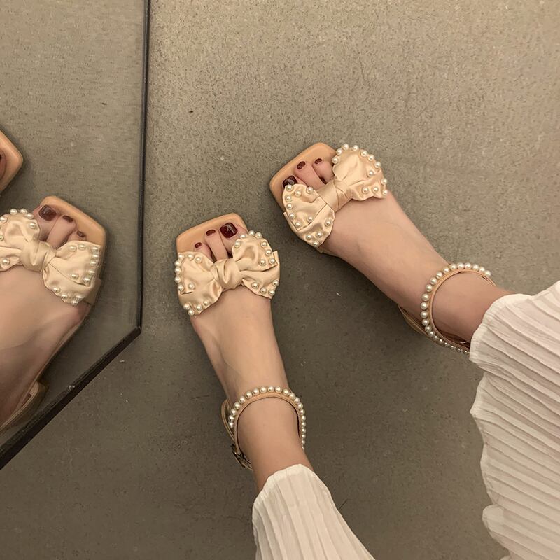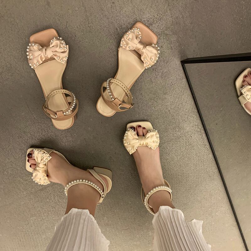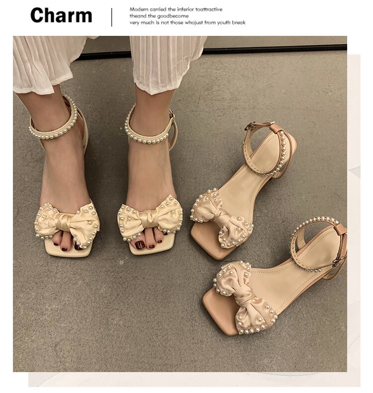 サンダルサマーレッドリボンパールスタイルヒール 靴 シューズ 夏物 真珠 スクウェア 部族の婦人靴67998844005