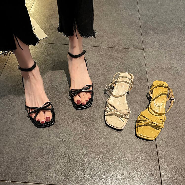 イブニングサンダルサマーレッドリボンヒール ハイヒール 靴 シューズ 夏物 部族の婦人靴15075753841