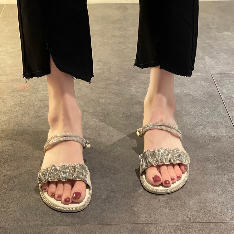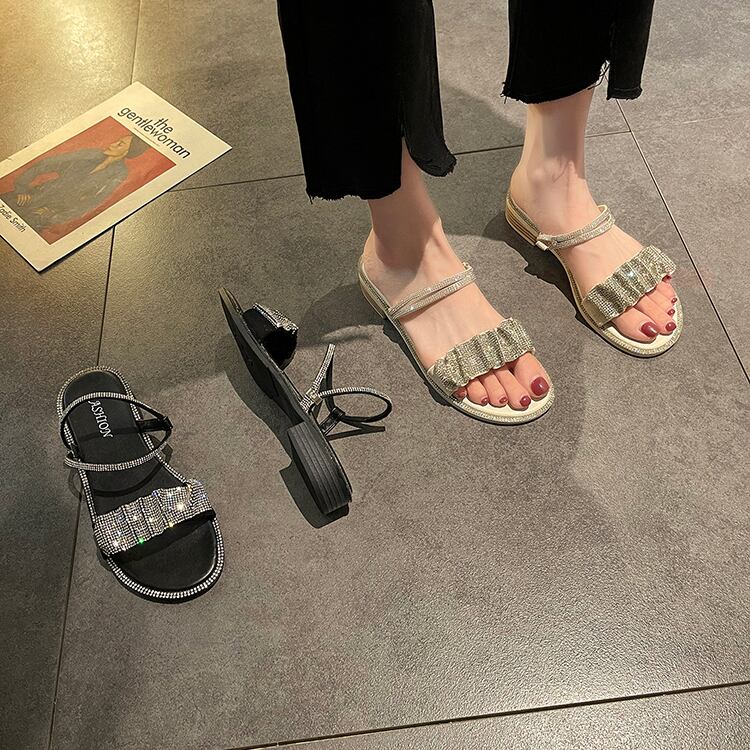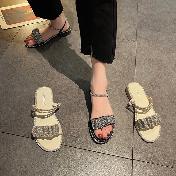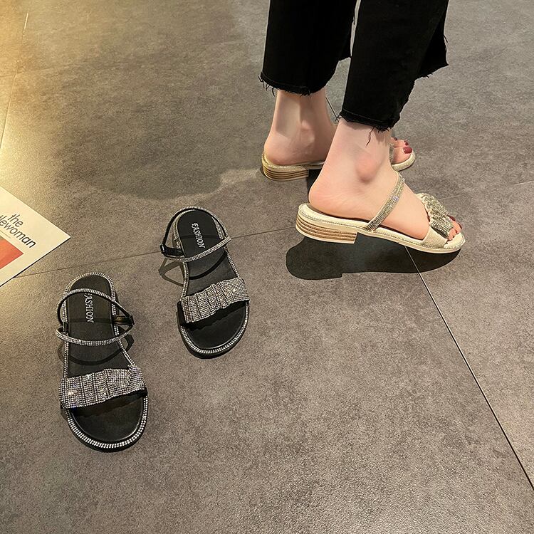 サマーラインストーンサンダルミュール 靴 シューズ 夏物 ビーチ 部族の婦人靴48833211013