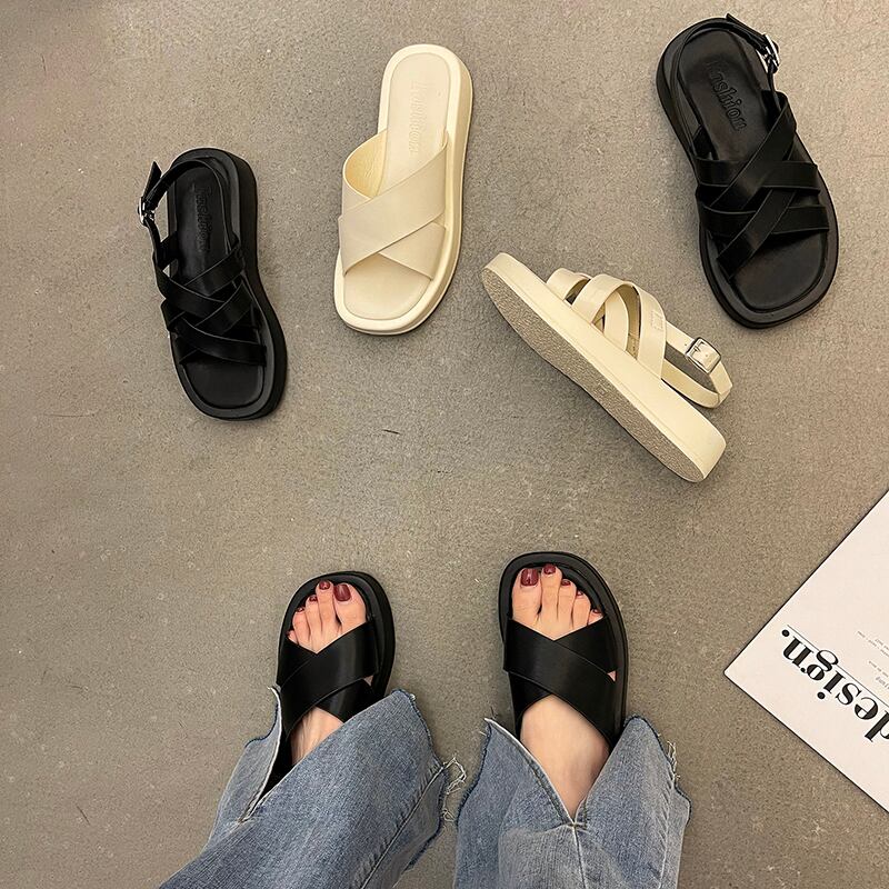 色:スリッパブラック,スリッパベージュ,サンダルブラック,オフホワイトのサンダル