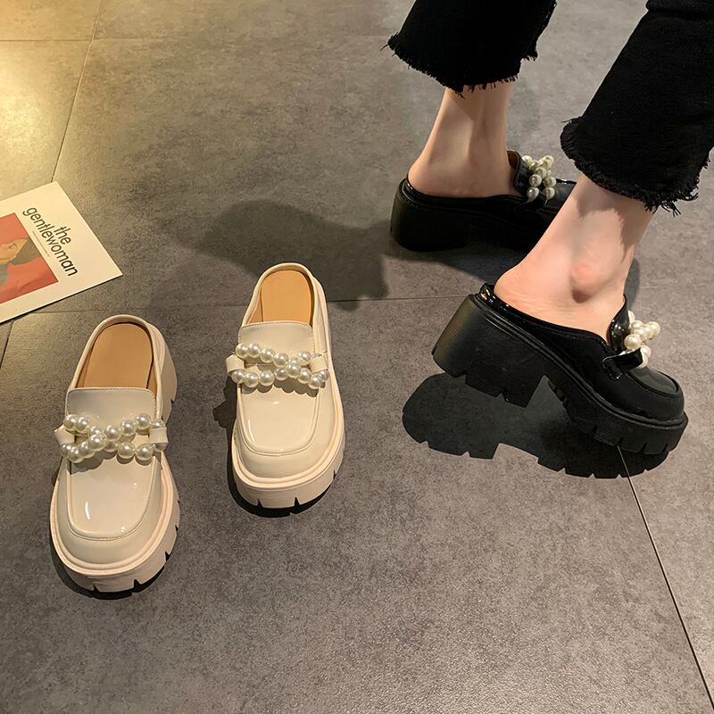 パールミュールアウターサマーサンダルレザー 靴 シューズ 夏物 真珠 部族の婦人靴52696426211