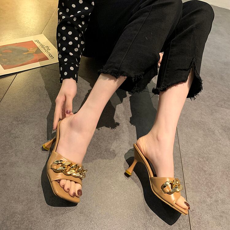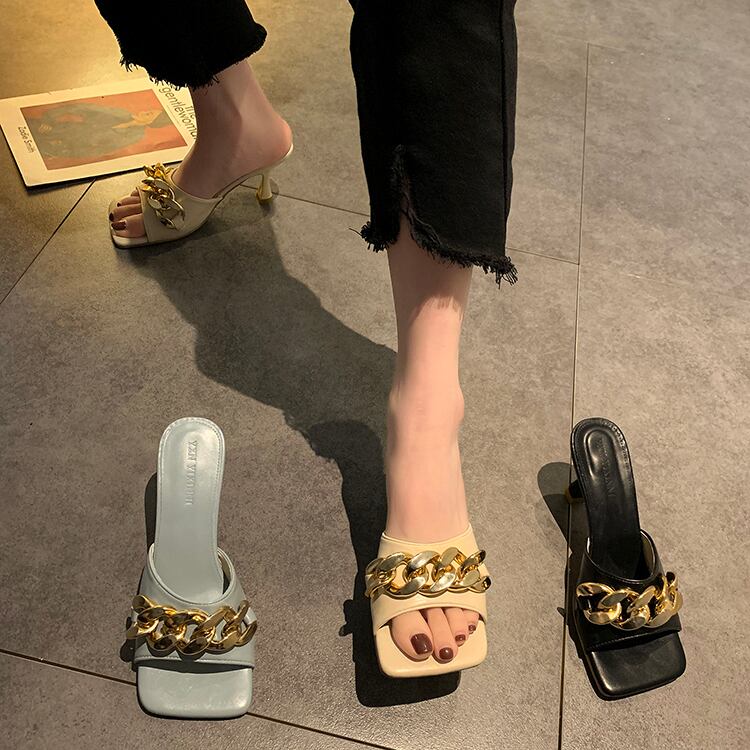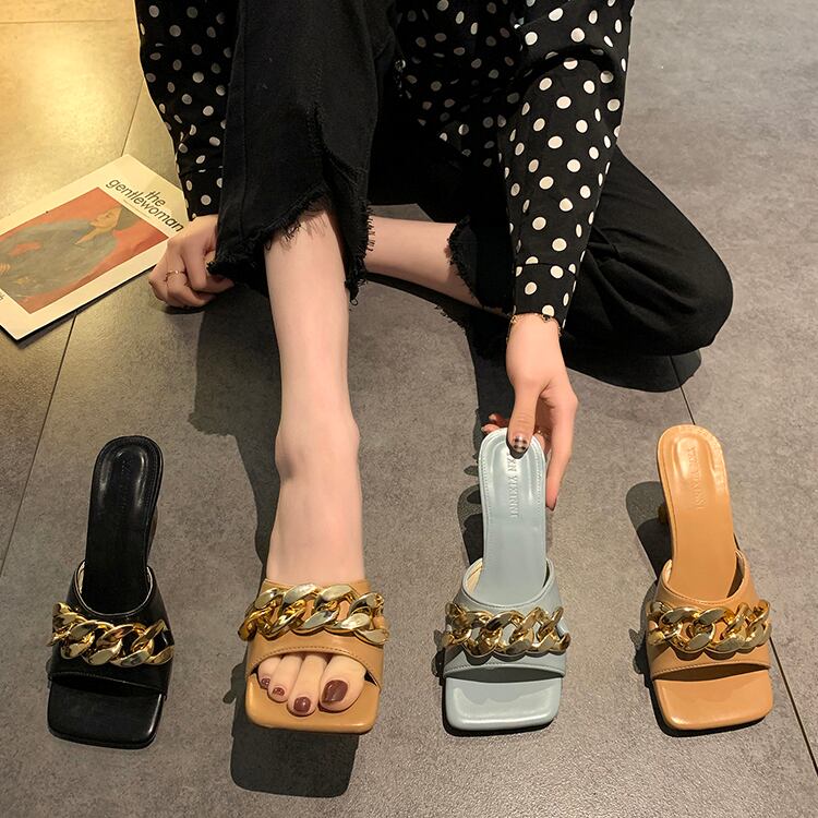 サンダルミュールサマースタイルレッドメタルチェーン 靴 シューズ 夏物 部族の婦人靴96176833831