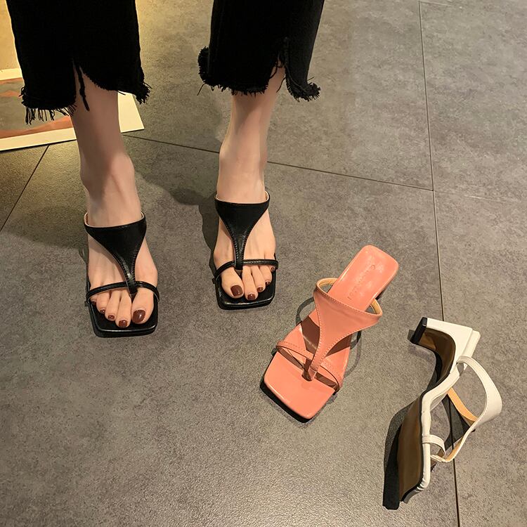 レッドサンダルミュールサマーヒール ハイヒール 靴 シューズ 夏物 スクウェア 部族の婦人靴39098577418