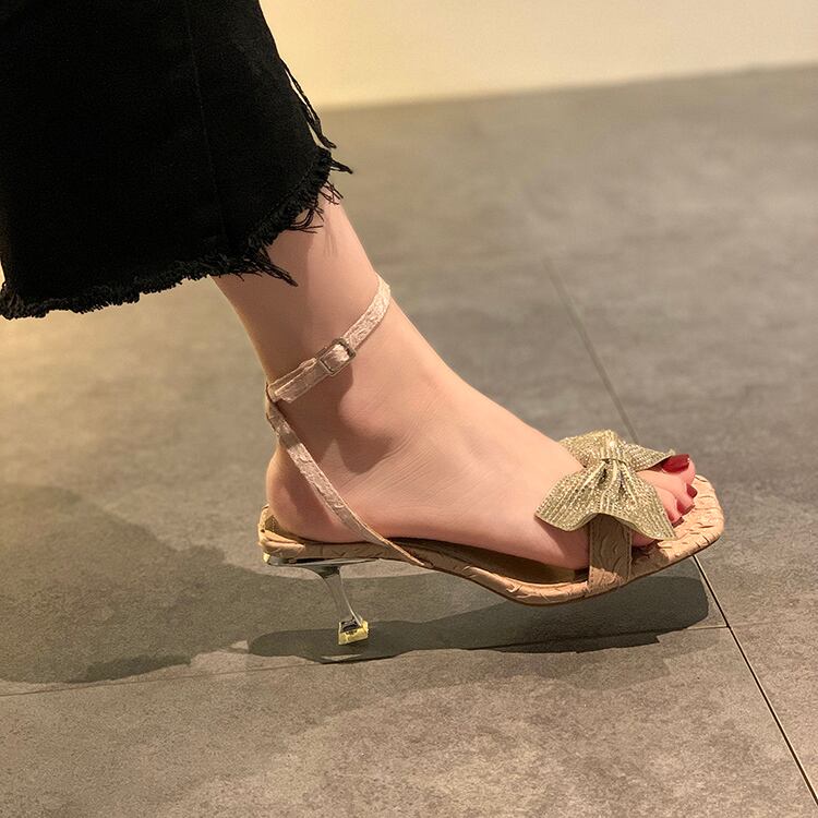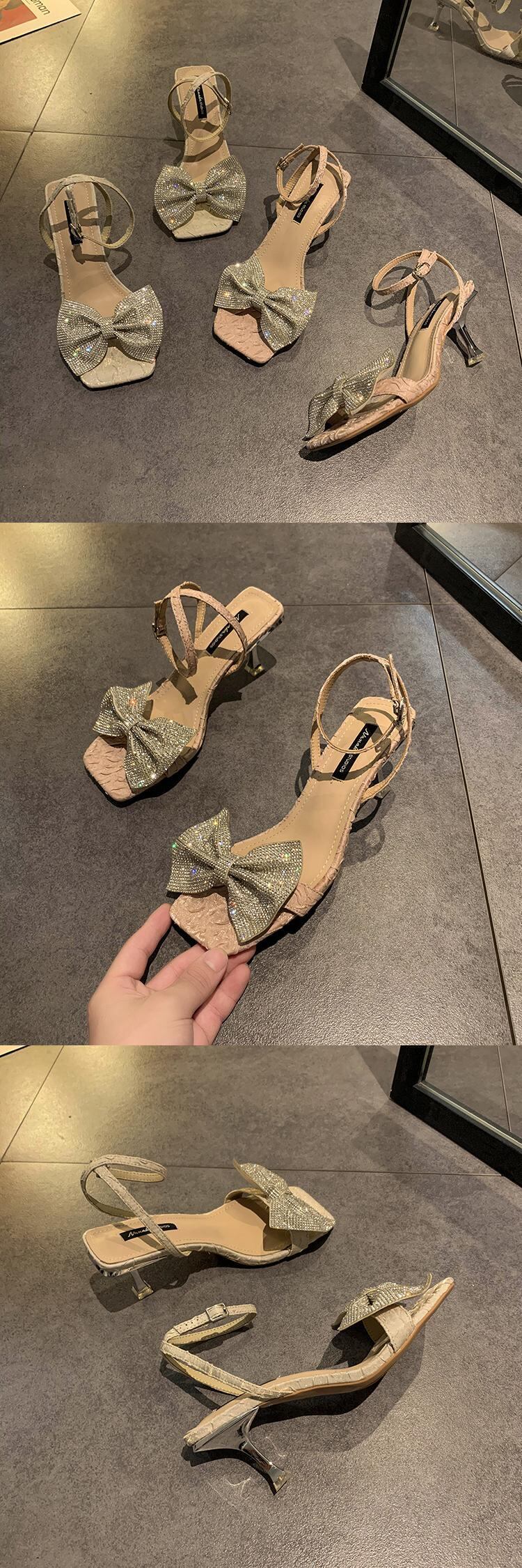 サンダルサマースタイルヒール リボン ハイヒール 靴 シューズ 大人ガーリー スウィート キュート カジュアル 夏物 部族の婦人靴69253354760