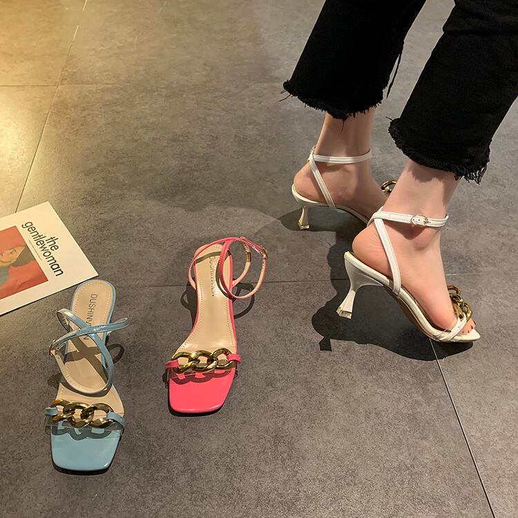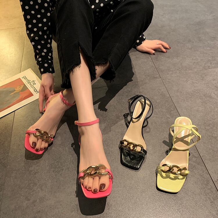 ハイヒールサンダルサマーメタルチェーン バックル 靴 シューズ 夏物 部族の婦人靴56318276700