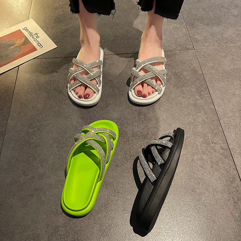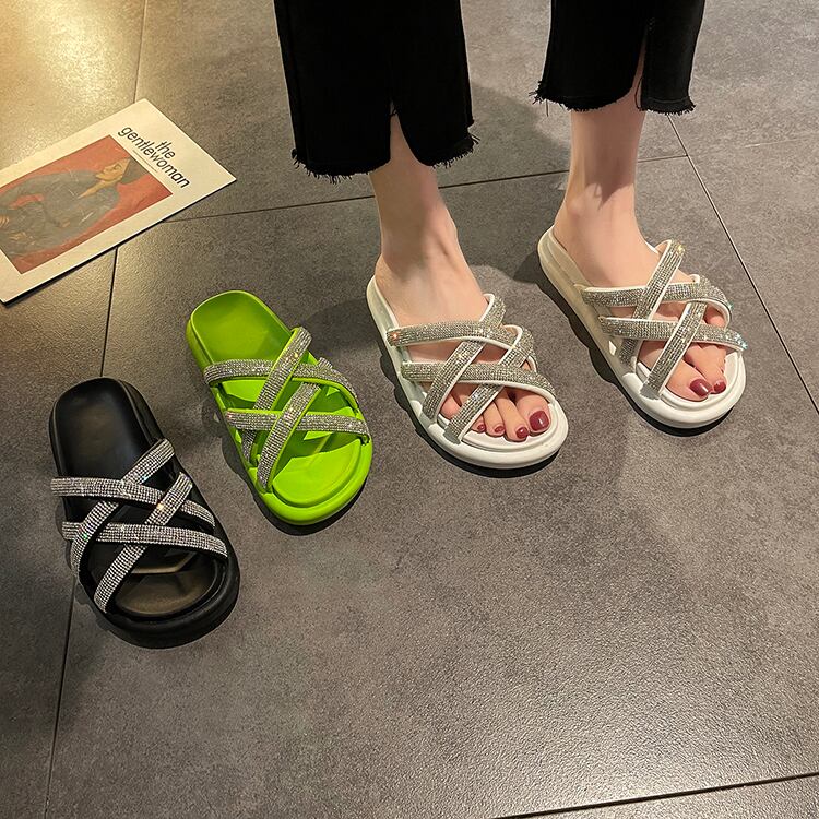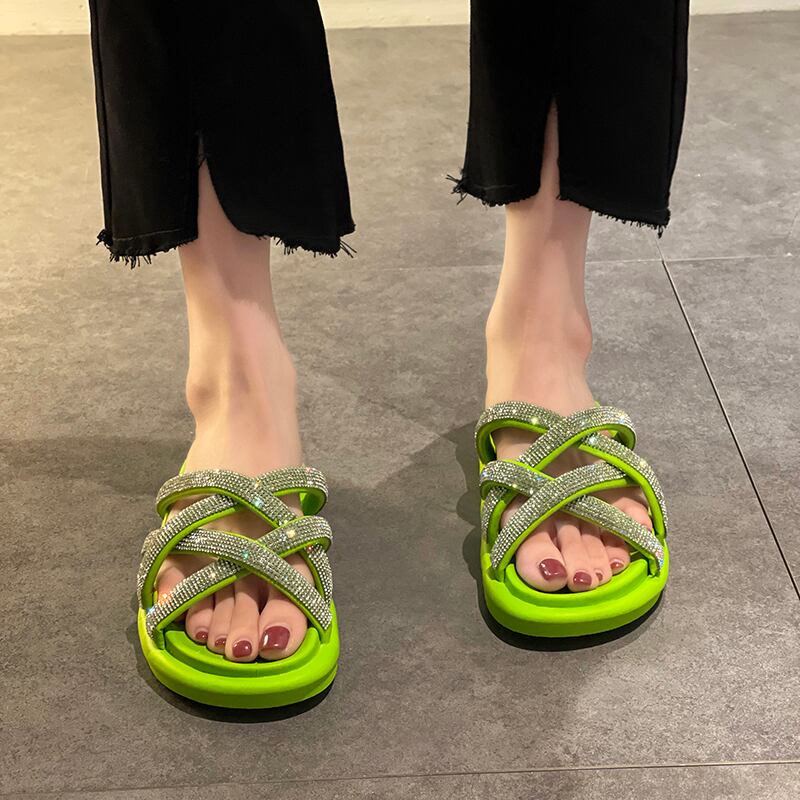 ミュールサマーレッドラインストーンサンダル 靴 シューズ 夏物 部族の婦人靴68777656468