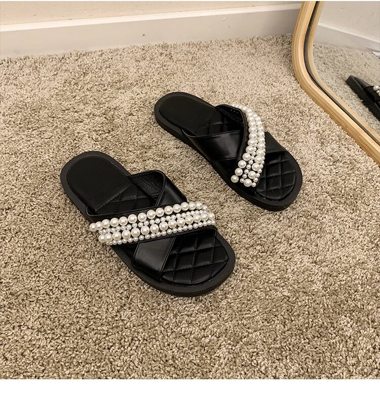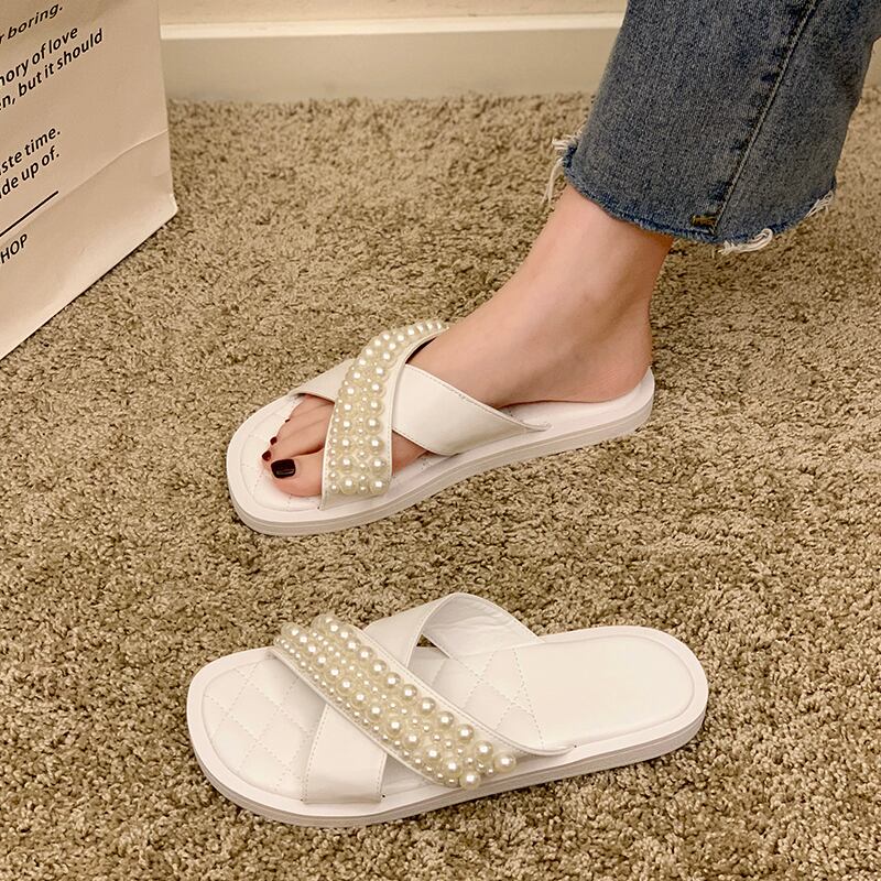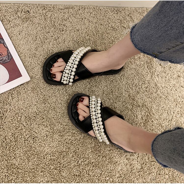 ミュールサマースタイルパールサンダル 靴 シューズ 夏物 真珠 部族の婦人靴64845057897
