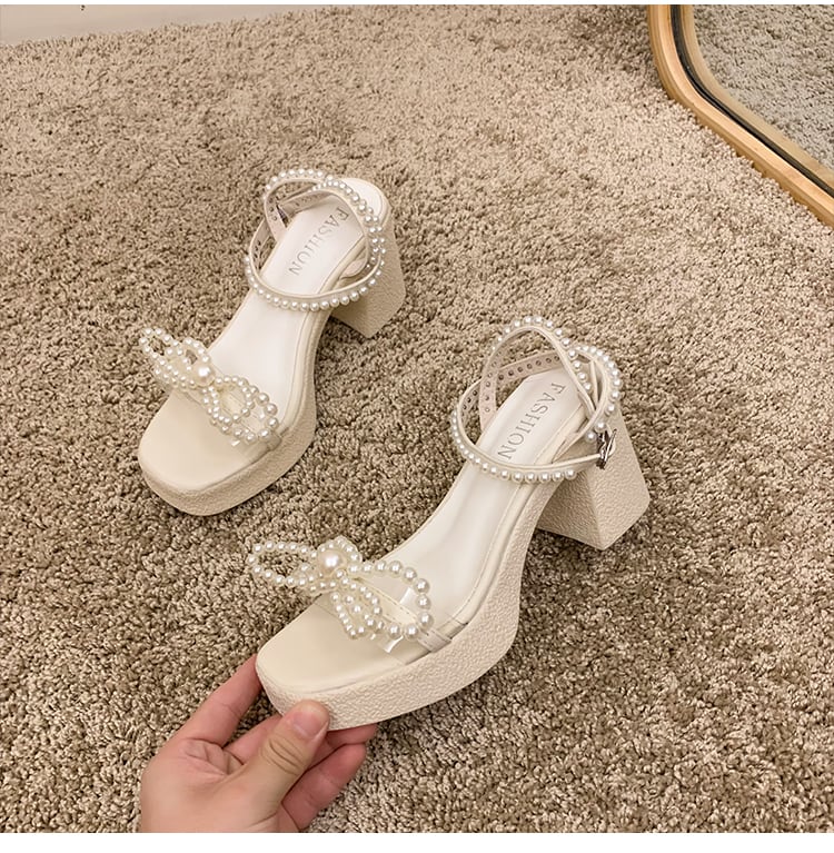 サンダルレディースサマースタイルパールバックルベルト ヒール ハイヒール 靴 シューズ 夏物 ハーネス 真珠 部族の婦人靴17086068251
