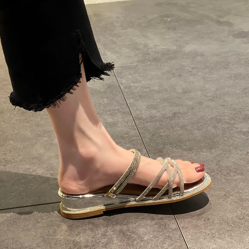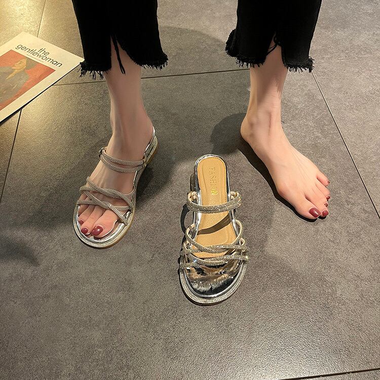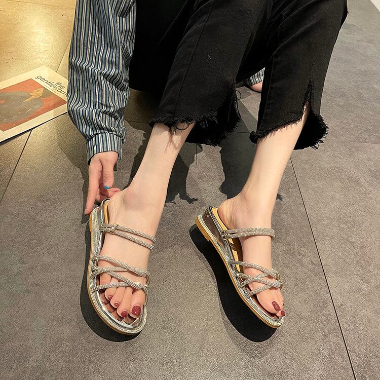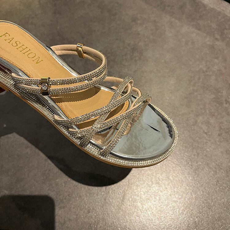 ミュールレディースサマーレッドラインストーンソリッド カラーサンダル 靴 シューズ 夏物 ソリッドカラー 部族の婦人靴90842260400