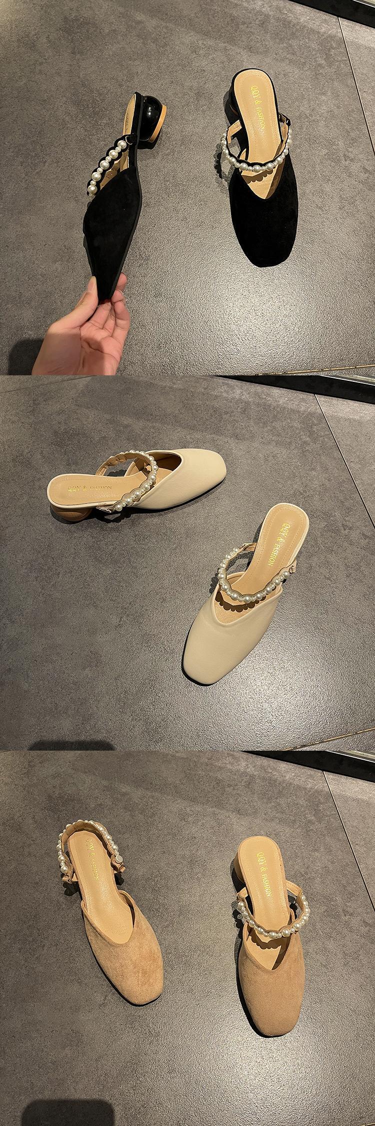 サマーレッドパールスタンダードサンダルミュール レトロ 靴 シューズ 夏物 真珠 部族の婦人靴69833647920