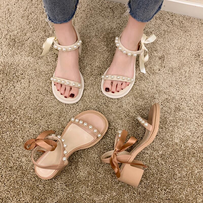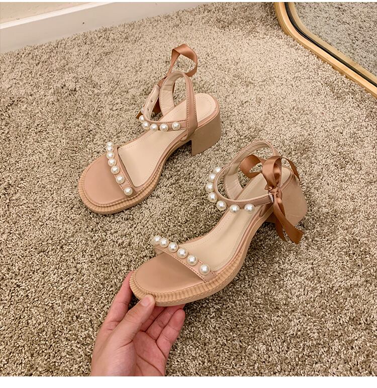 サンダルサマーパールレッドスタイルヒール ハイヒール 靴 シューズ 夏物 真珠 部族の婦人靴27579081101