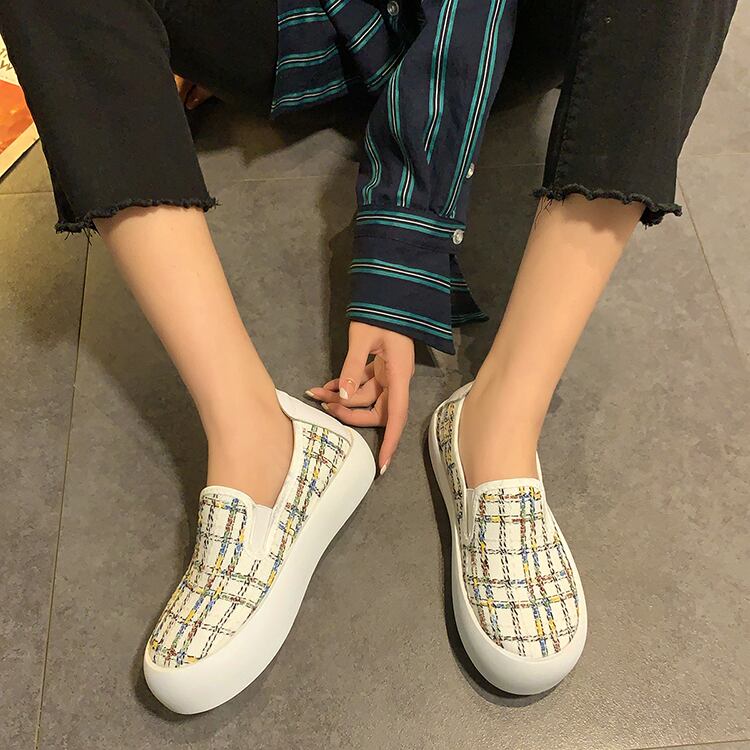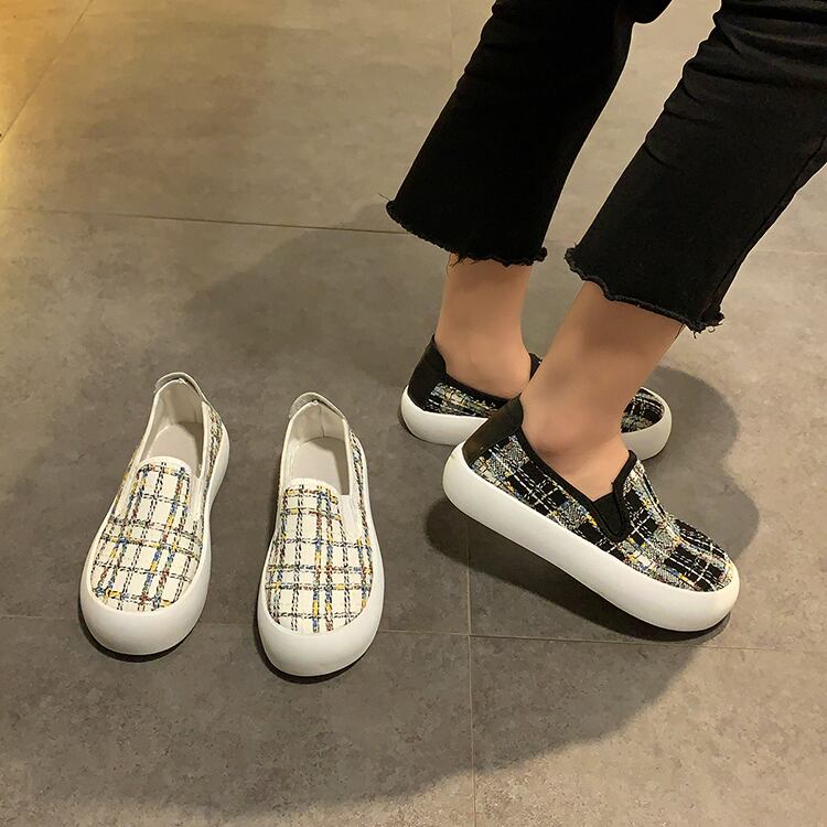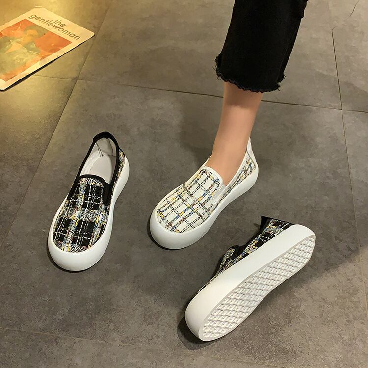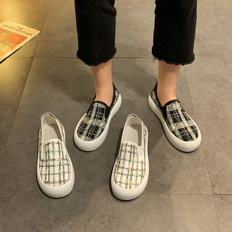 カジュアル格子柄スプリング 靴 シューズ 春物 ラウンドトー 部族の婦人靴37698273338