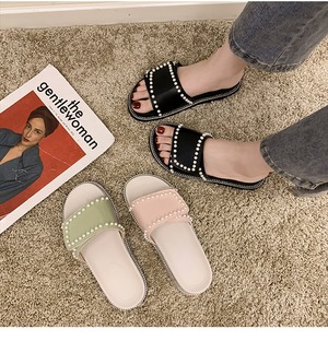 ミュールサマーレッドスタンダードパールサンダル レトロ 靴 シューズ 夏物 真珠 部族の婦人靴34074810139