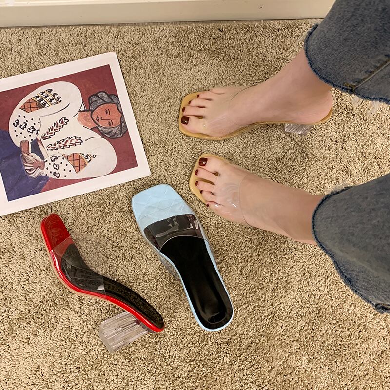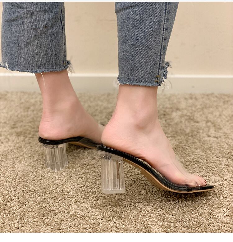 サンダルミュールレディースサマークリスタルヒール ハイヒール 靴 シューズ 夏物 スクウェア 部族の婦人靴91662872386
