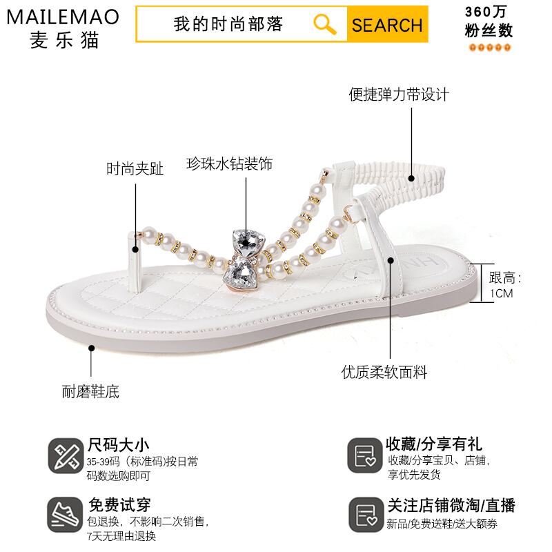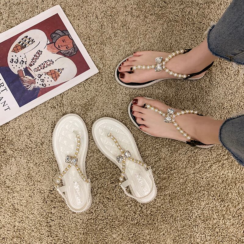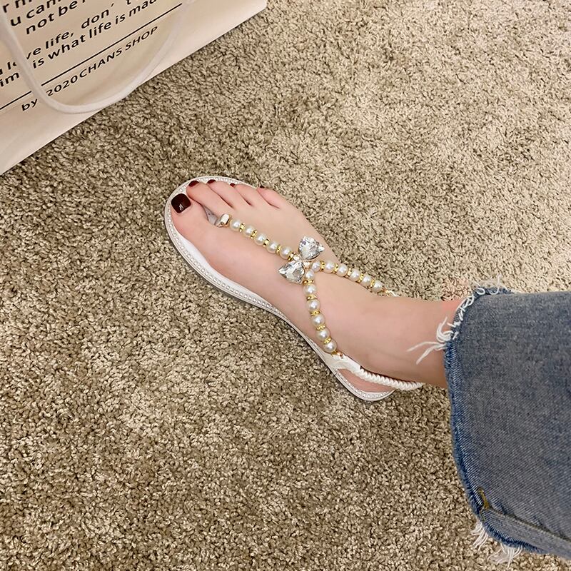 サンダルサマースタイルパールラインストーン 靴 シューズ 夏物 ビーチ 真珠 部族の婦人靴1662007808