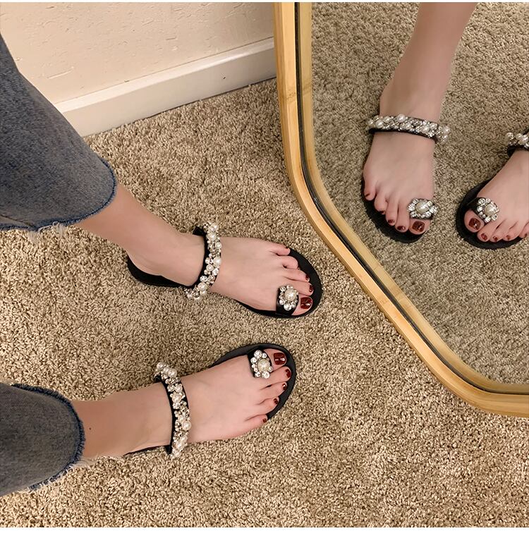 ミュールサマーレッドパールラインストーンセット サンダル 靴 シューズ 夏物 真珠 部族の婦人靴95160802705
