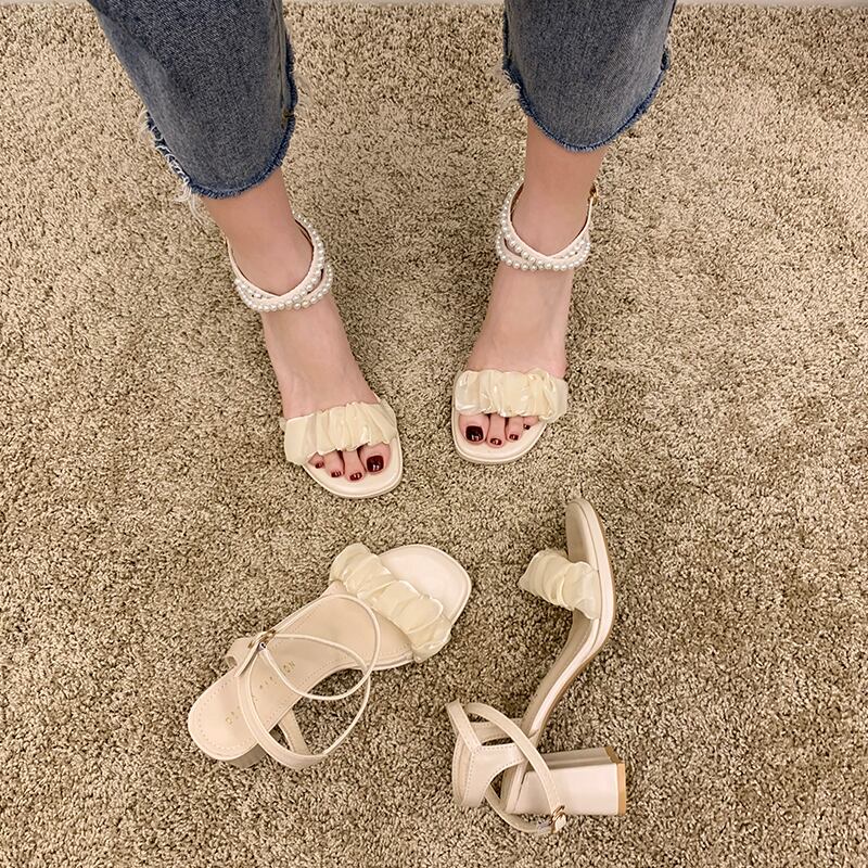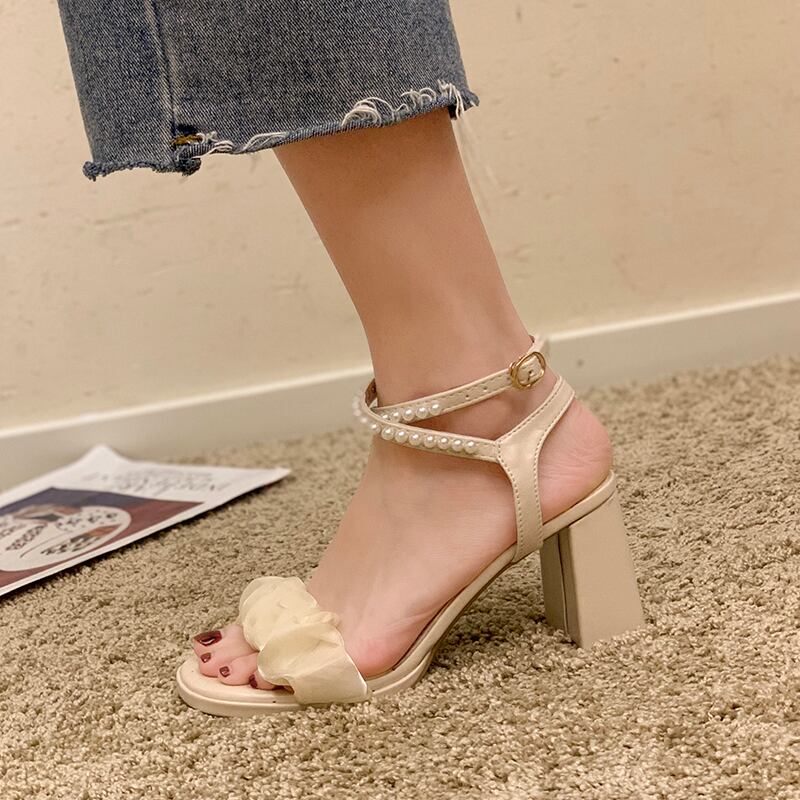 サンダルサマーパールスタイルメッシュヒール ハイヒール 靴 シューズ 夏物 真珠 部族の婦人靴64076426016