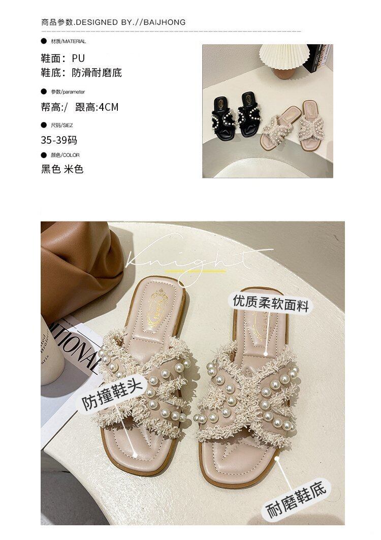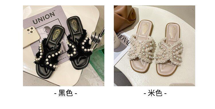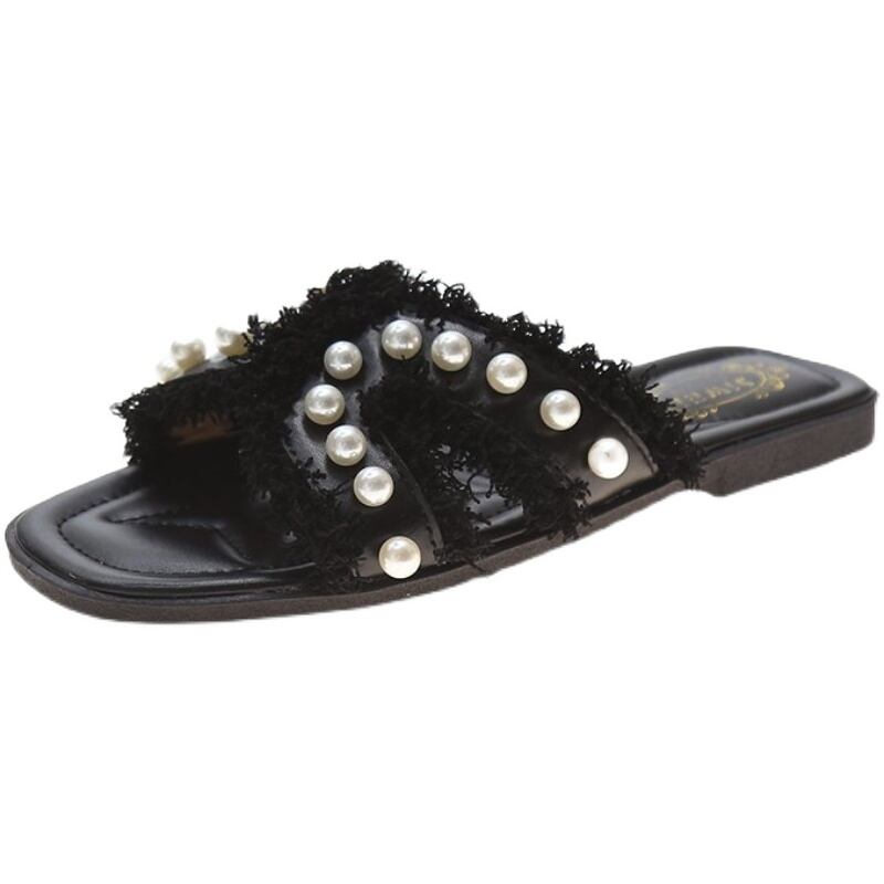 ミュールサマースタイルパールソリッド カラーサンダル 靴 シューズ 夏物 真珠 ソリッドカラー 部族の婦人靴55992514117