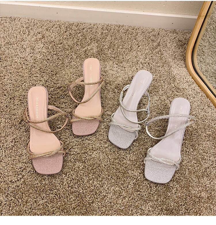 サンダルサマーラインストーンレッドカラーヒール ハイヒール 靴 シューズ 夏物 ピュア 部族の婦人靴25478444129