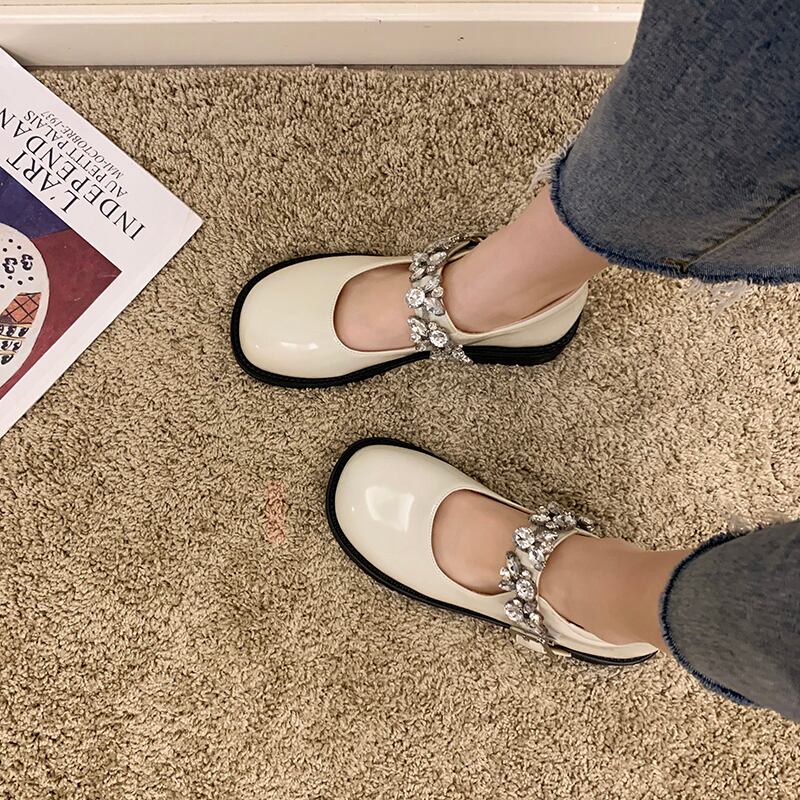 レザーサマースタンダードソリッド カラーラインストーンシングル 靴 シューズ レトロ 夏物 ソリッドカラー 部族の婦人靴92502572915