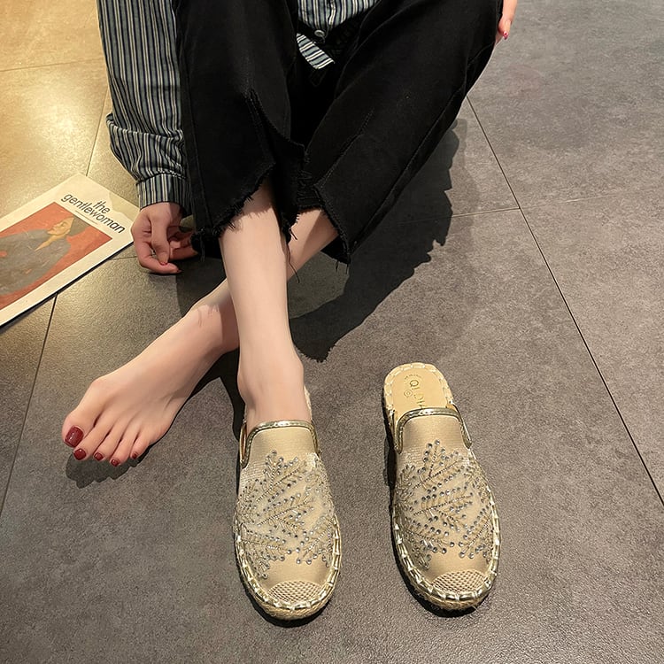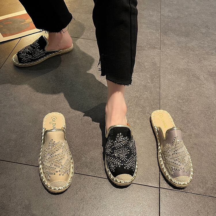 ミュールサマーレッドラインストーンサンダル 靴 シューズ 夏物 部族の婦人靴454673819