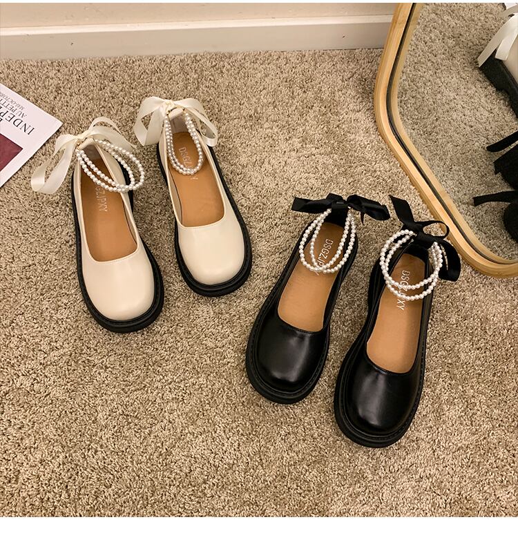 レザーサマーレッドパールヒール 靴 シューズ 夏物 ラウンドトー 真珠 部族の婦人靴24321964568
