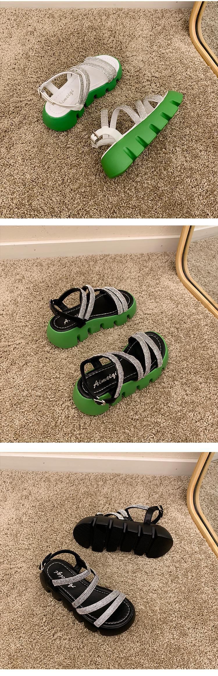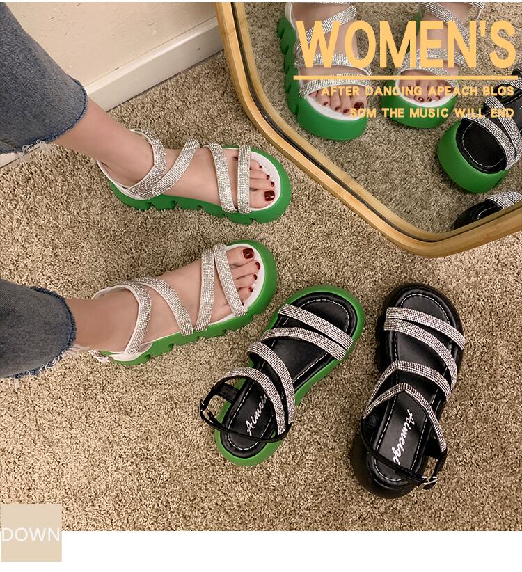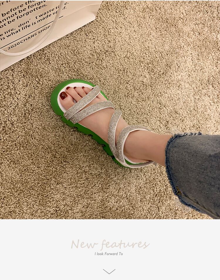 ラインストーンサンダルサマーレッドグリーン 靴 シューズ 夏物 部族の婦人靴11937755362