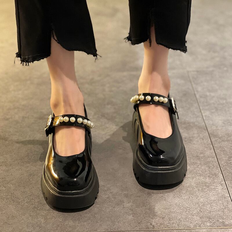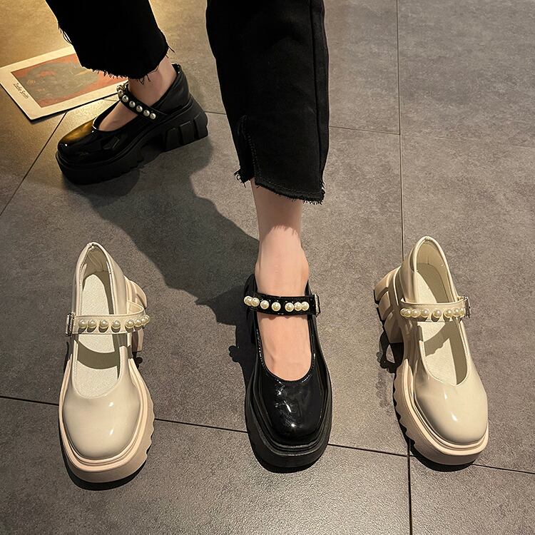 レザーサマースタイルパールスタンダードハイヒール 靴 シューズ レトロ 夏物 真珠 スクウェア 部族の婦人靴56301262187