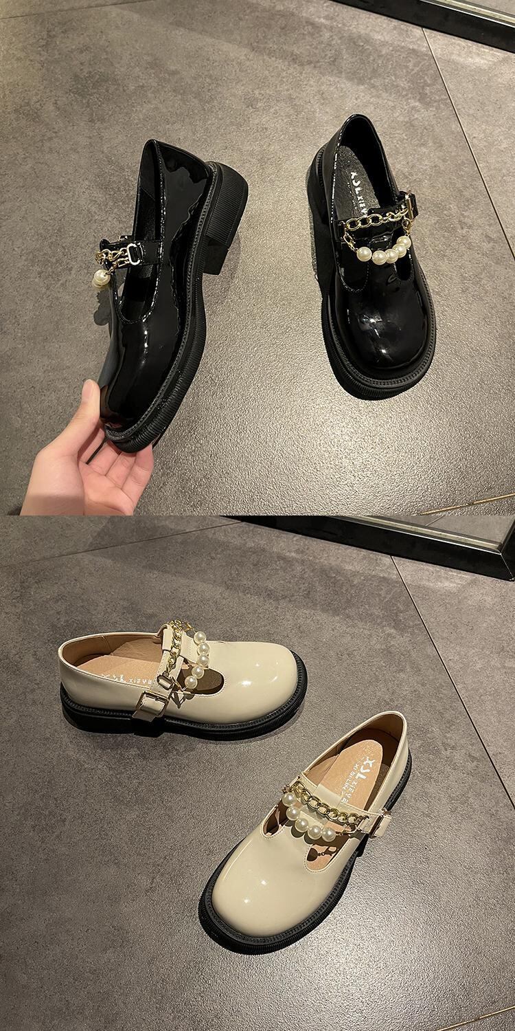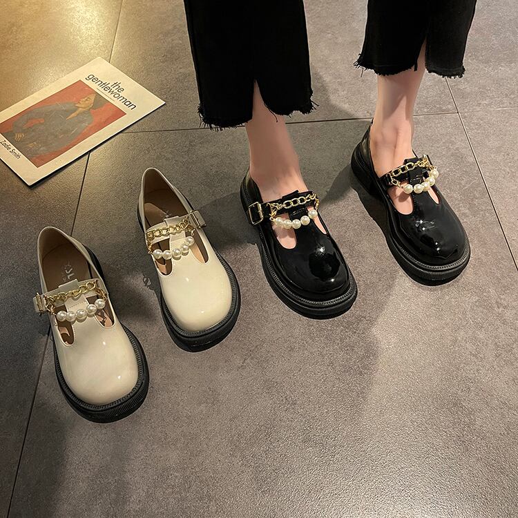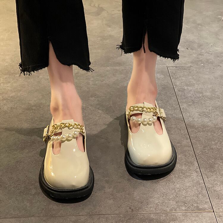 レザーサマーパールチェーン スタンダード 靴 シューズ レトロ 夏物 真珠 部族の婦人靴85429304194