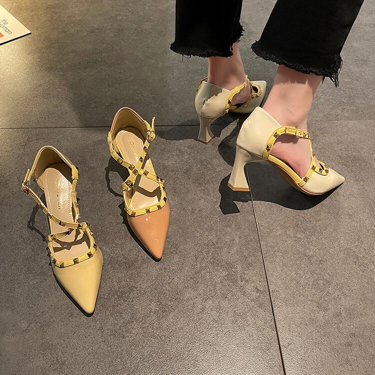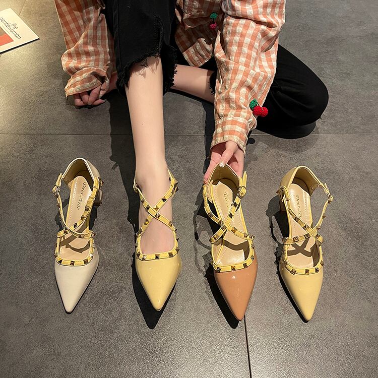 サンダルサマーバックル薄手レッドスタイルヒール ハイヒール 靴 シューズ 夏物 部族の婦人靴63493639224